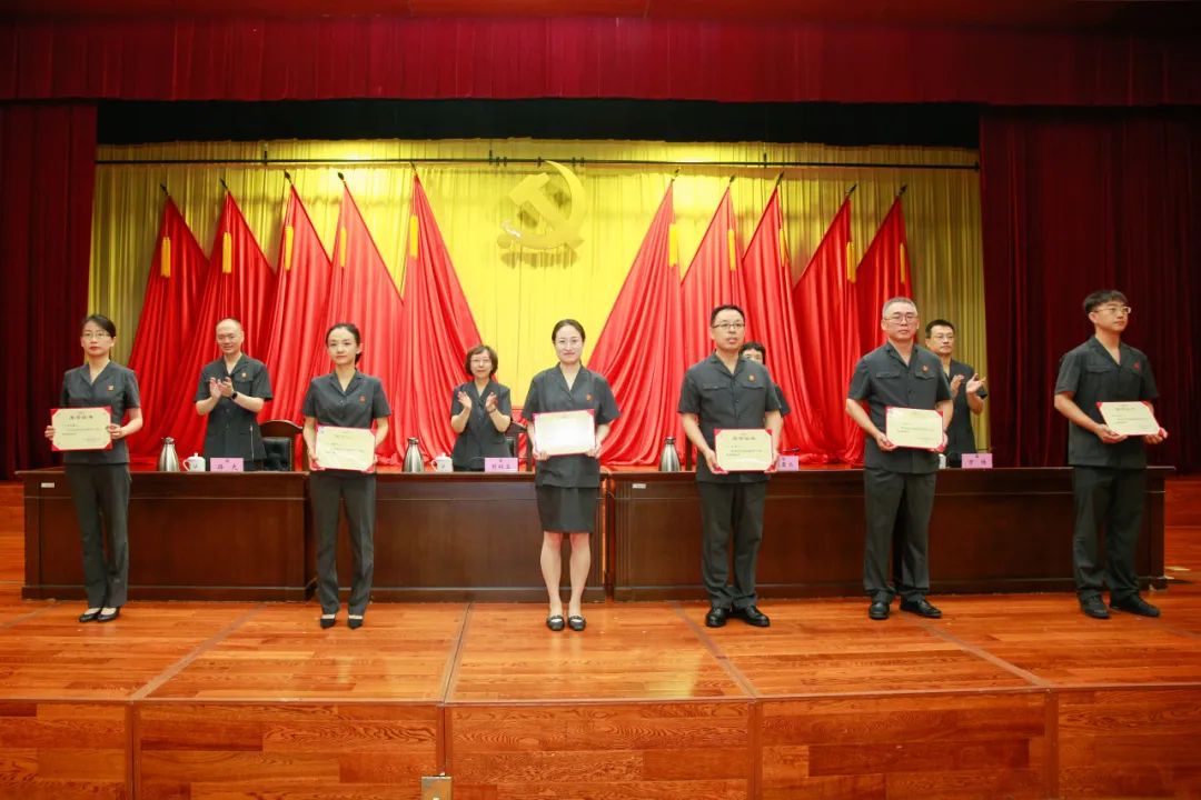 会上,路光主任宣读了《中共北京知识产权法院机关委员会关于表彰院级优秀共产党员、优秀党务工作者和先进基层党组织的决定》。审四庭党支部荣获院级先进基层党组织,李红霞等10名同志荣获院级优秀共产党员,司品华、王嗣卓2名同志荣获院级优秀党务工作者。受到表彰的集体和个人依次上台领奖。