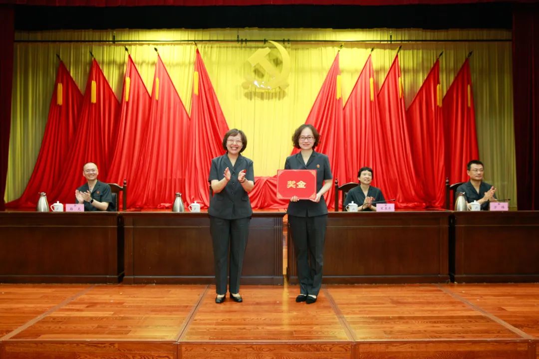 接下来,刘双玉院长为近日荣获“全国先进工作者”称号的周丽婷同志颁发表彰奖励,希望周丽婷同志永葆奋斗本色,在司法实践中深耕不辍,再创佳绩,希望全院干警以英模为镜,汲取榜样力量,将矢志不渝的坚守与热忱,融入工作日常,共同谱写新时代法治事业壮丽篇章。