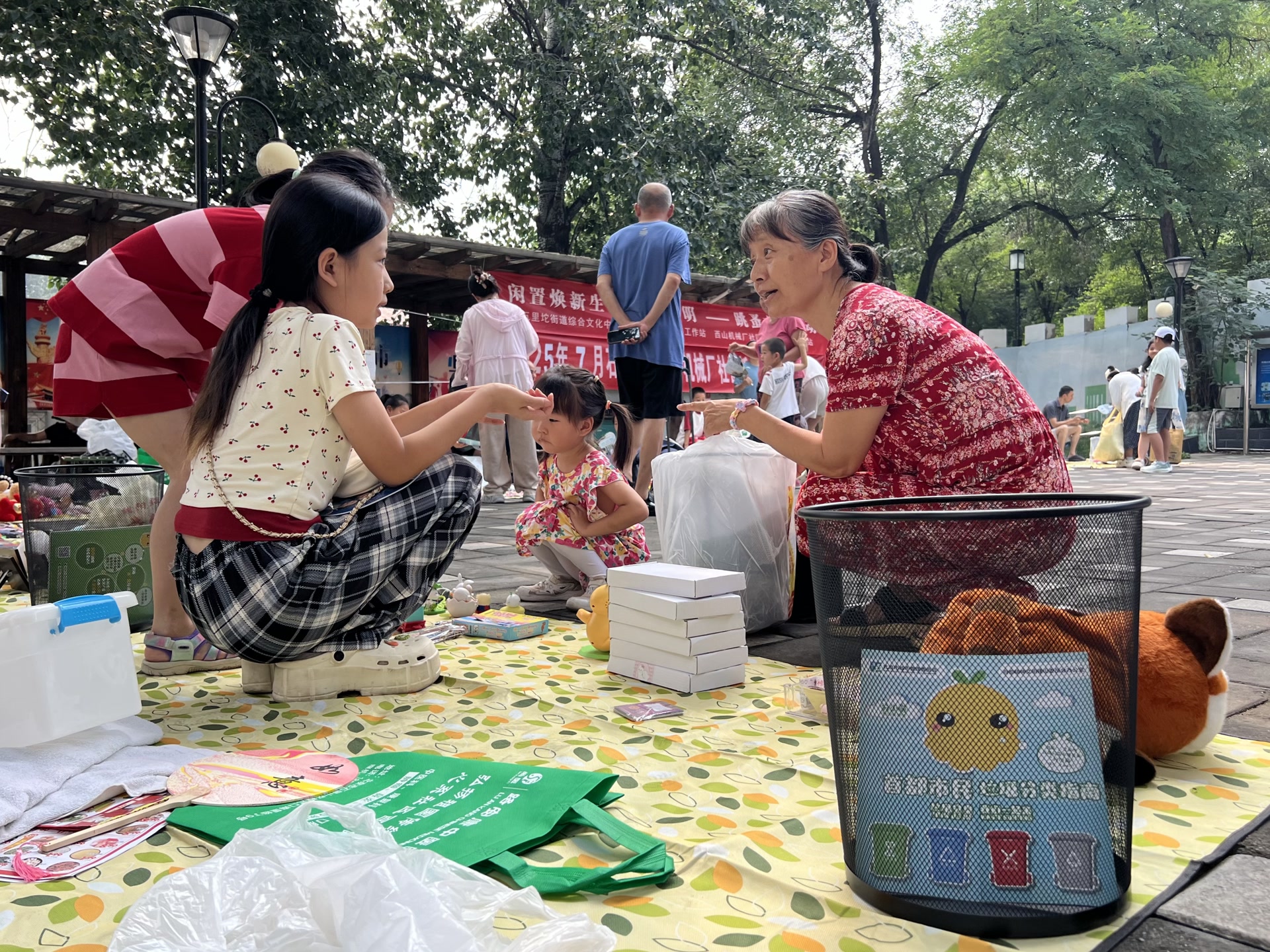 活动现场亮点纷呈。在垃圾分类宣传展位,工作人员向居民发放垃圾分类指南手册,呼吁大家养成分类习惯规范投放;互动游戏“垃圾分类飞行棋”以“玩中学”的趣味形式,帮助未成年人“通关”掌握生活垃圾的四色分类知识,志愿者在一旁随时为遇到“分类难题”的小朋友进行“科普指导”。社区居民将家中闲置的玩具、书籍、饰品等带到跳蚤市场,通过以物换物或低价交易的方式,让闲置物品重新流通。旧物回收专区广受老年人喜爱,他们将平日积攒的旧衣物、小家电等物品带来进行兑换,居民陈阿姨拿着兑换到的洗衣液开心地跟工作人员说:“旧物回收这个方式特别好,又减少资源浪费还能兑换到实用的生活用品,希望社区以后多组织。”