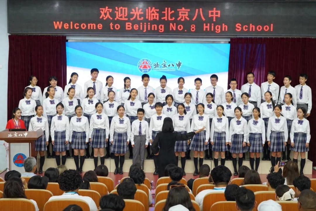 7月14日上午,由北京市人民对外友好协会与北京市第八中学(以下简称北京八中)联合主办的中美青少年合唱团交流活动在北京八中如期举行。来自美国圣杰纳维夫高中英勇之声合唱团与Pure N Heart合唱团的80余名青少年走进北京八中,在歌声与文化的碰撞中,续写“鼓岭缘”中美民间友好佳话。北京市人民对外友好协会常务副会长张谦,西城区副区长郭洁,国务院参事、北京八中校长王俊成,北京八中党委书记张晓梅等出席活动。北京八中副校长王素英致欢迎词。此次活动是2025年“鼓岭缘”中美青少年合唱周框架内活动。