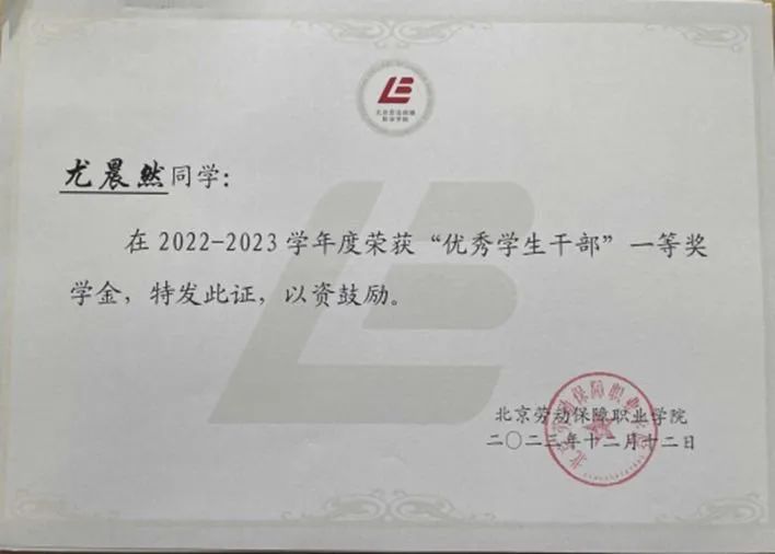 ▲2022-2023学年荣获“优秀学生”一等奖学金