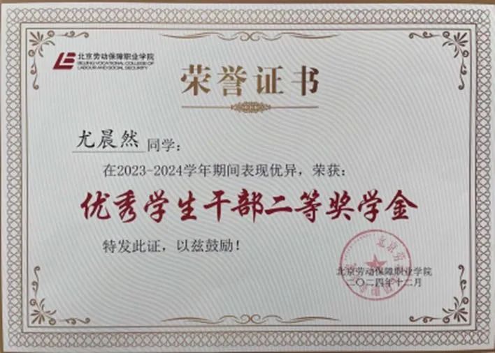 ▲2023-2024学年荣获“优秀学生干部”二等奖学金