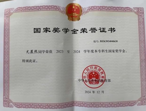 ▲2023-2024学年荣获国家奖学金