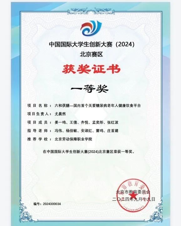▲2024年荣获中国国际大学生创新创业大赛北京市赛一等奖