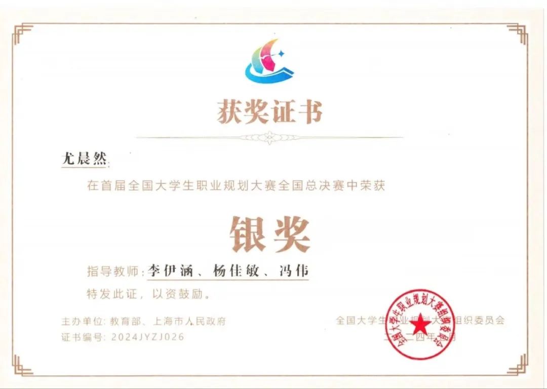 ▲2024年荣获首届大学生职业规划大赛全国总决赛银奖