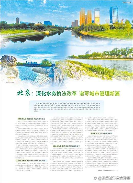 围绕“深化行政执法体制改革”要求,北京市把深化行政执法改革作为落实首都城市战略定位、构建超大城市治理体系和提升治理能力的抓手。按照北京市委市政府的工作安排,自2024年7月1日起,由城管执法部门集中行使水务部门行使的全部行政处罚权以及与之相关的行政检查权、行政强制权,强化协同治理、提升智慧监管、践行服务为民,积极推动综合执法质效的优化升级,在深化行政执法体制改革中作出了富有特色的探索与实践。
