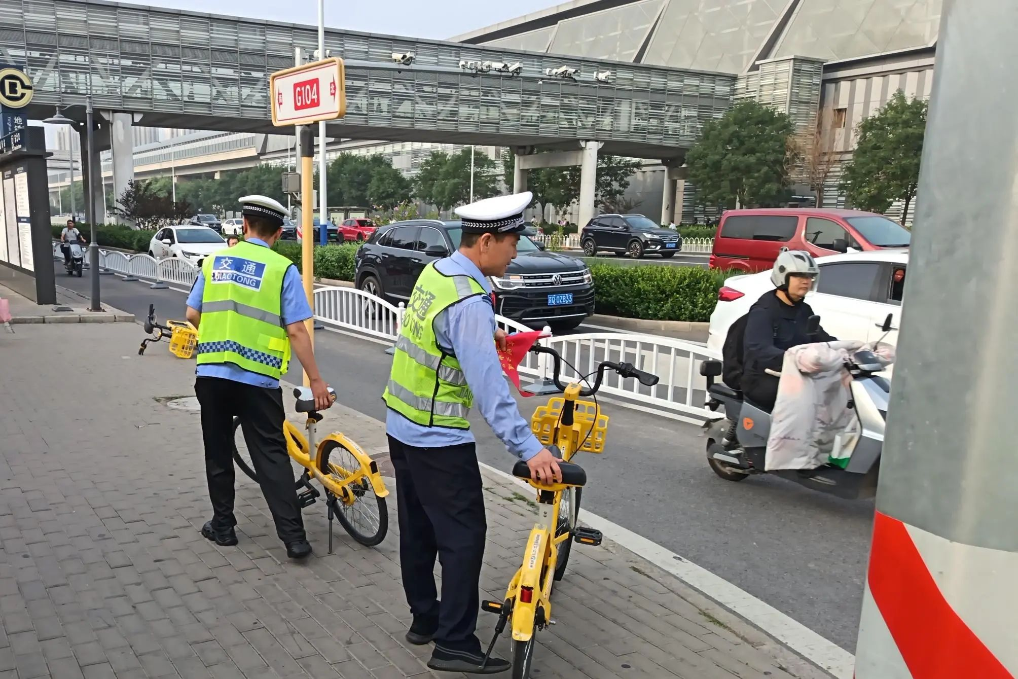 镇域四个关键路口引入智慧发光斑马线,升级智能一体式人行信号灯,搭配语音提示桩,“视觉+听觉”让出行更安全又安心。挖掘潜能,在地铁站口建设5000余平方米非机动车临时停放区,安装太阳能照明系统及电子监控设备,充足停车资源,改善停车难现象。