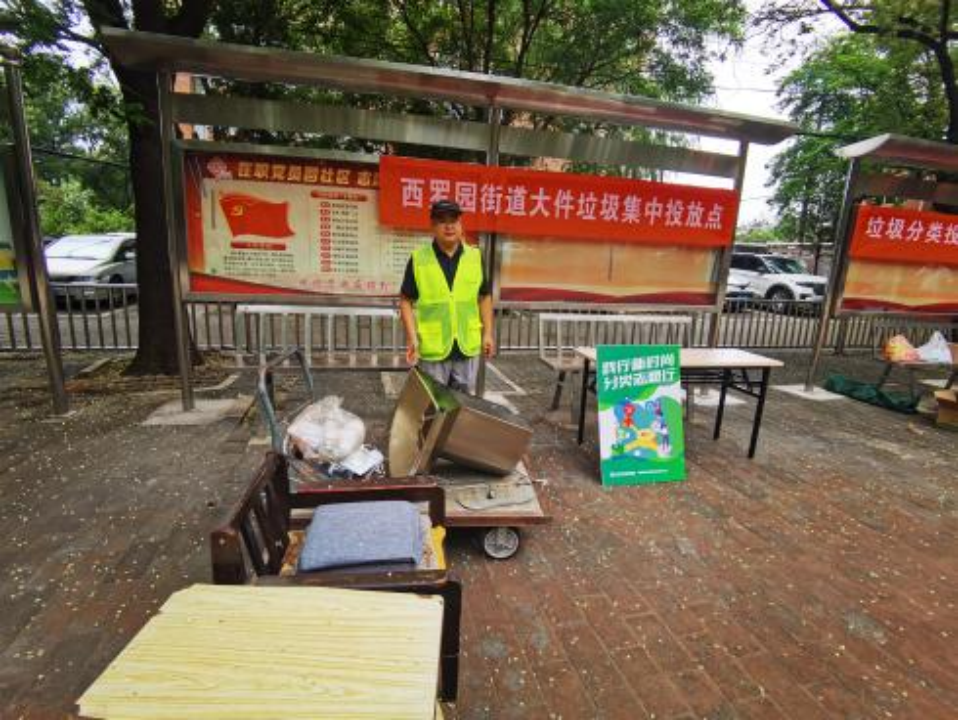 在广场的另一侧,针对困扰居民许久的家具处理难题,活动特别设立了“大件垃圾绿色通道”。回收机构的工作人员根据居民们的需求,将大家家中的旧沙发、床垫等废弃物品搬运至活动现场,为居民提供免费清运服务,有效解决了居民的实际困扰。