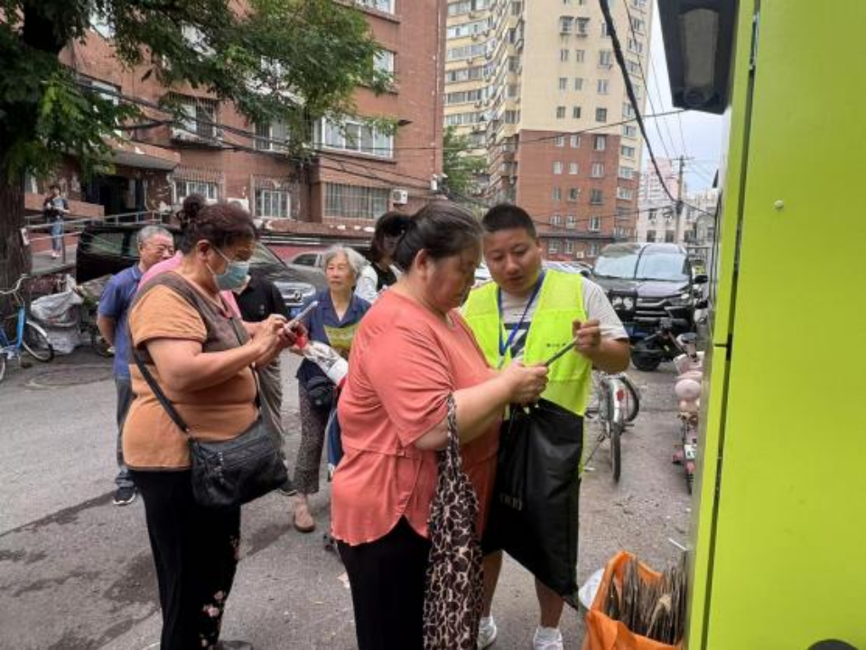 为进一步便利居民分类投放,社区此次共新安装两台智能回收箱,分别设立在16号楼北侧和17号楼北侧。在小区大门不远处的17号楼北侧垃圾分类站旁,新安装的绿色智能回收箱前格外热闹,多名居民在工作人员的引导下,有序排队投放纸盒、衣物、金属等可回收垃圾。完成称重后,居民只需用手机扫码即可实现提现。“这种垃圾分类回收箱太方便了!出门就能投放,不用攒着送回收站,家里干净了,还能多一笔收入。”社区居民张师傅由衷点赞。如今,这些设立在社区内的垃圾分类智能回收箱,正让可回收物变废为宝,切实提升着市民参与垃圾分类的获得感。