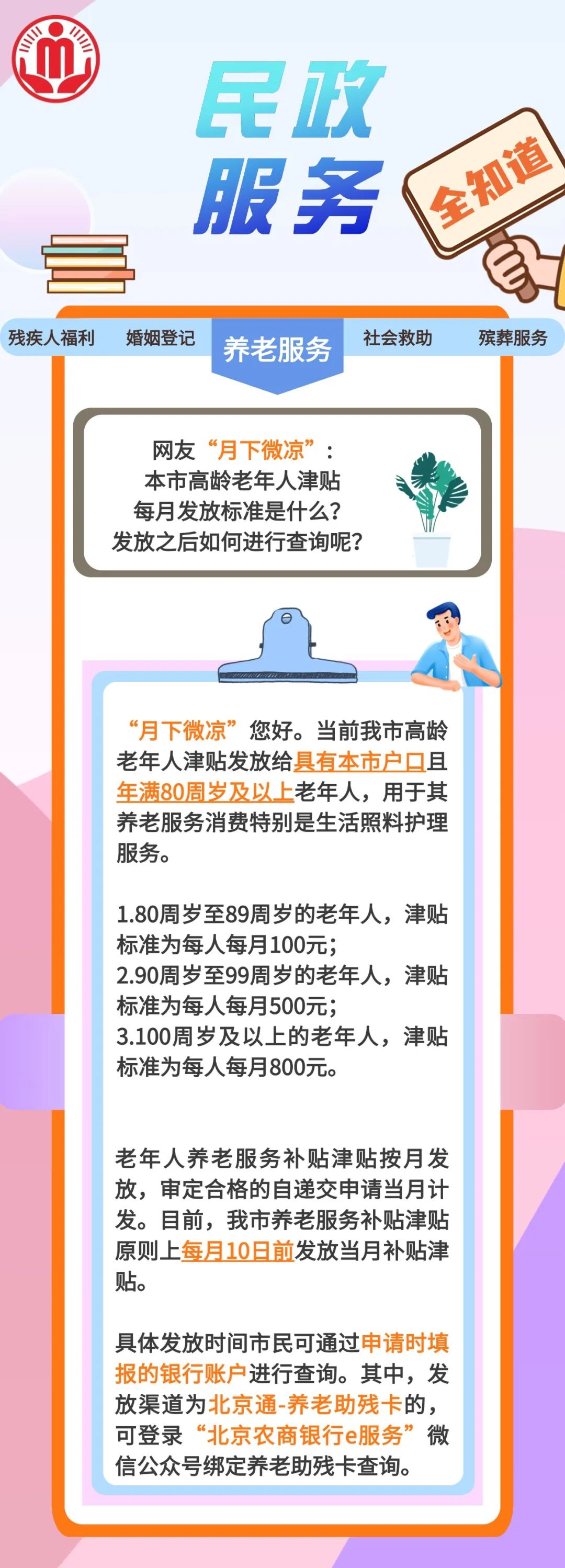 本市高龄老年人津贴每月发放标准是什么?发放之后如何查询?
