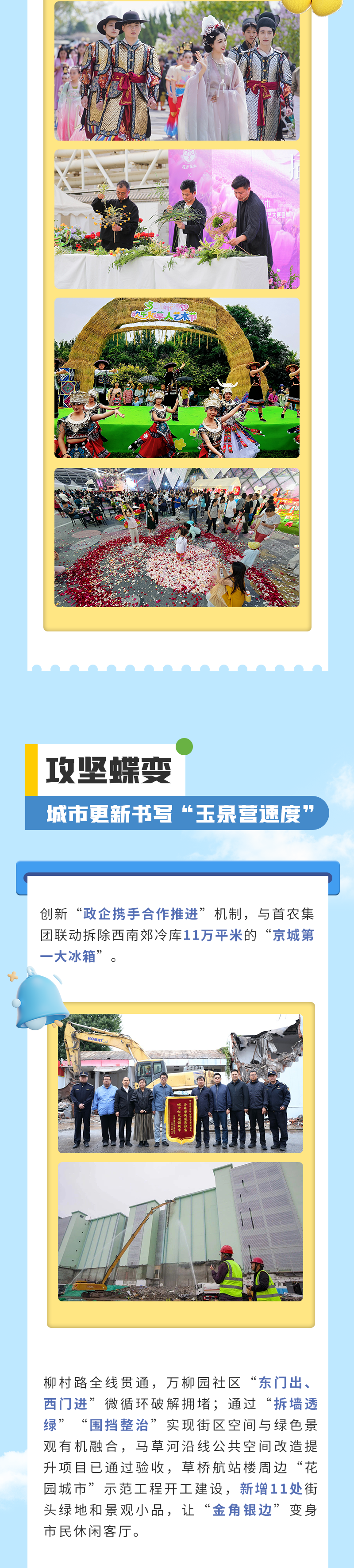 在丰台区委区政府的坚强领导下,在社会各界人士的关心和支持下,在全体机关及社区村干部的共同努力下,玉泉营街道以“党建领航”凝聚发展合力、以“泉心力量”浇灌民生沃土,让“花香满城”的美好愿景渐次绽放。