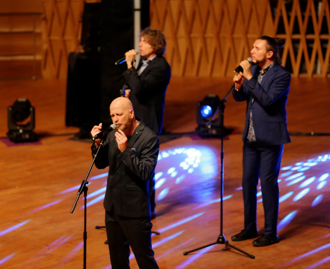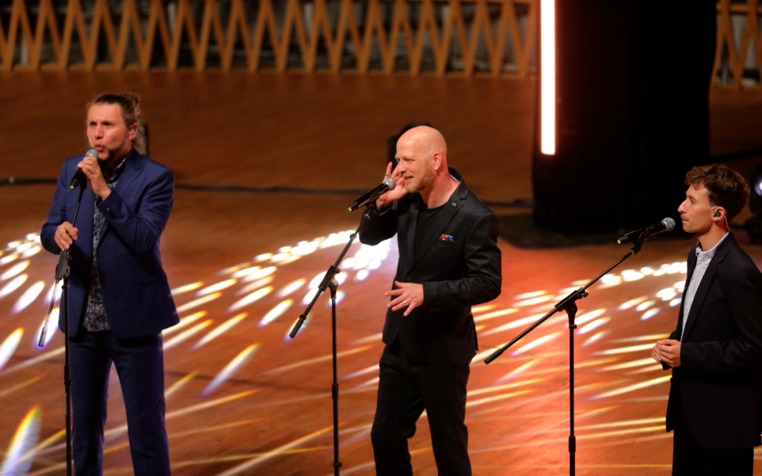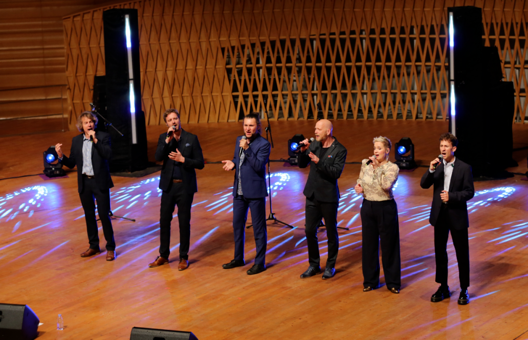 这一场的另一半作品多为流行曲目,其中既有原创也有改编。作为一支阿卡贝拉团体,这部分作品才是他们的“拿手好戏”。这场音乐会上,他们展示了太多的音乐风格:《只有你》《轻盈如羽》是放克风格、《哈莱姆夜曲》是爵士风格、《来吧》是摇滚风格、《凡人》是灵魂风格。他们几乎对每一种流行音乐的风格都信手拈来,而且对于节奏律动的把握尤其精准。女中音、男高音和男中音都有出彩的主唱段落,几乎可称为一支“全员能独唱”的团体。这些作品无一例外都获得了观众的热烈回应。