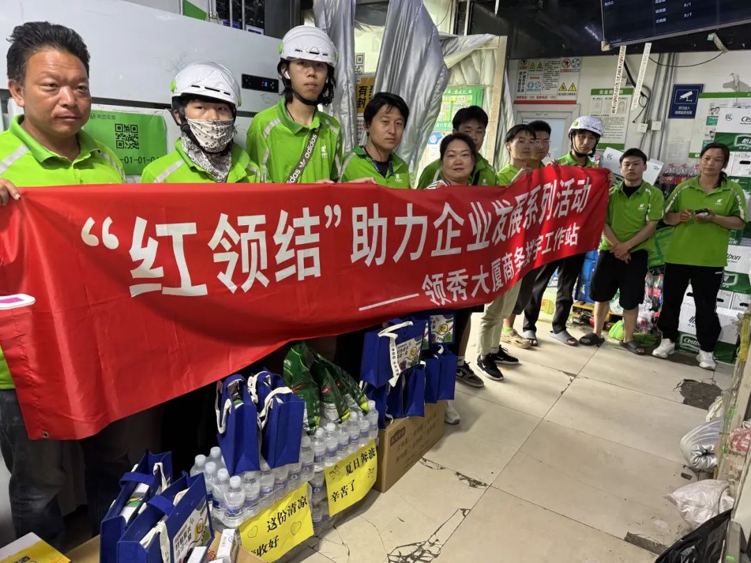 为积极应对高温天气,切实关怀新就业群体,7月14日至16日,古城街道领秀大厦商务楼宇工作站组织开展“夏日送清凉”慰问活动,为京东分拣员、小象超市配送员、恒源盛弘网约车司机以及喜隆多暖蜂驿站的外卖骑手等一线工作者送去防暑物资和暖心服务,传递党组织的关怀与温暖。