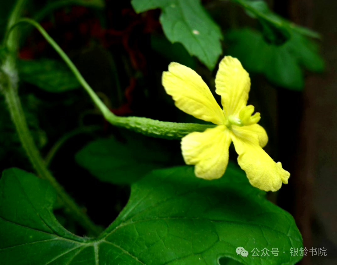 小时候听妈妈说:苦瓜籽儿边缘疙疙瘩瘩,那是它心中有苦结,可它开出的花,却金黄金黄像阳光。