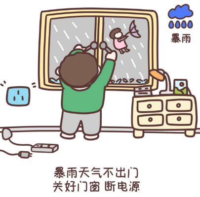 暴雨洪水天气避免涉水行走,警惕井盖、电线杆漏电。