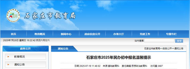 石家庄市2025年民办初中报名温馨提示