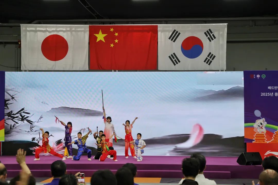 上午,开幕式在激昂的鼓点中开启。来自中日韩三区的48名青少年运动员身着统一队服,以混合编组的4支联队方阵精神抖擞入场,展现团结奋进的风采。气势恢宏的舞狮表演和行云流水的武术表演赢得现场阵阵喝彩,展现了中华文化的勃勃生机。