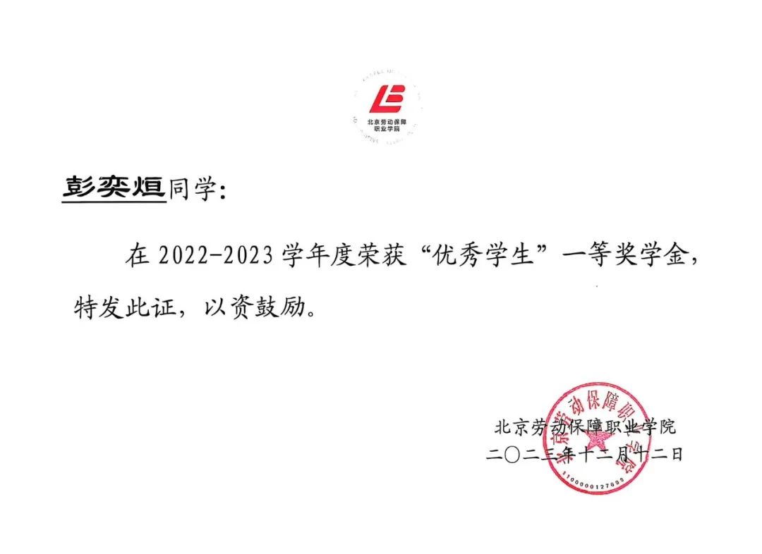 ▲2022-2023学年荣获“优秀学生”一等奖学金