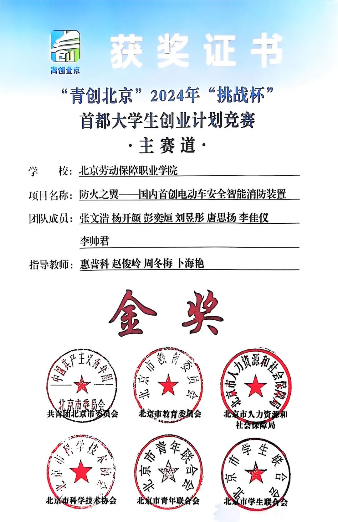 ▲2024年荣获“青创北京”2024挑战杯首都大学生创业计划竞赛金奖