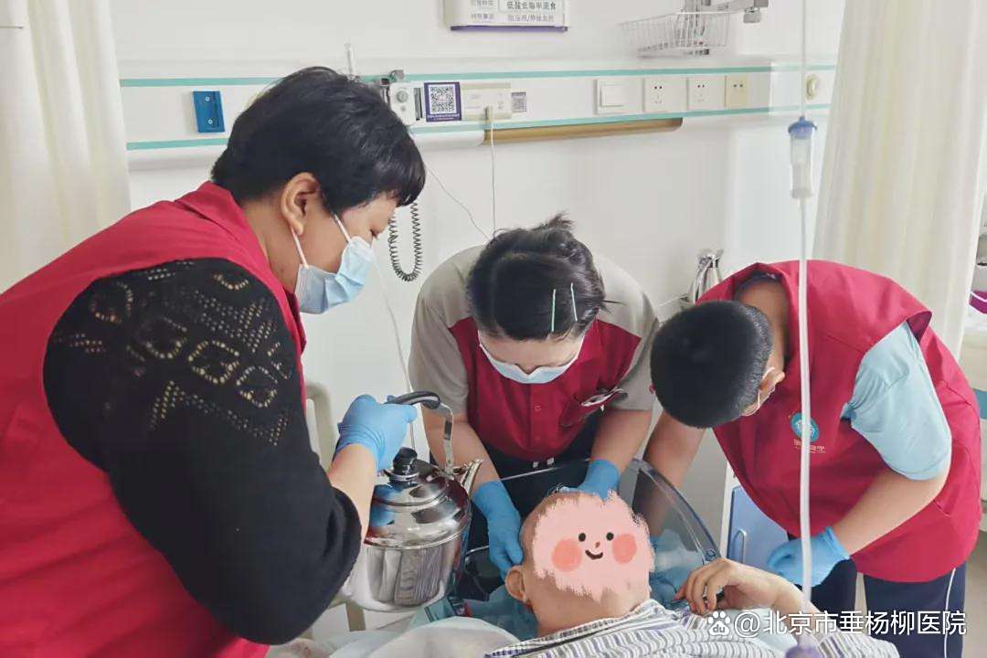 在充满关怀与温情的清华大学附属垂杨柳医院老年医学科病房里,一抹特别的暖阳悄然洒落。7月16日,一群身着红马甲的爱心志愿者走进病房,为行动不便、长期卧床的老人们带来了一项贴心的服务:“从头开始”爱心洗头理发活动。