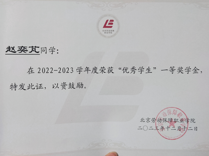 ▲2022-2023学年荣获“优秀学生”一等奖学金