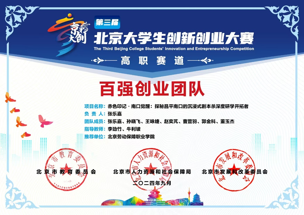 ▲2024年荣获第三届北京大学生创新创业大赛高职赛道百强创业团队
