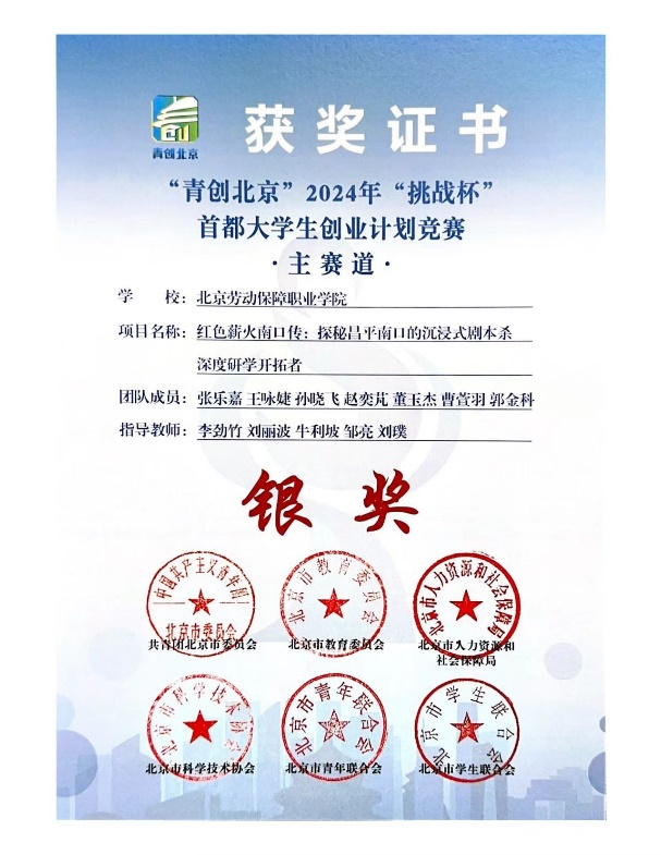 ▲2024年荣获 “青创北京”2024年“挑战杯”首都大学生创业计划竞赛主赛道银奖