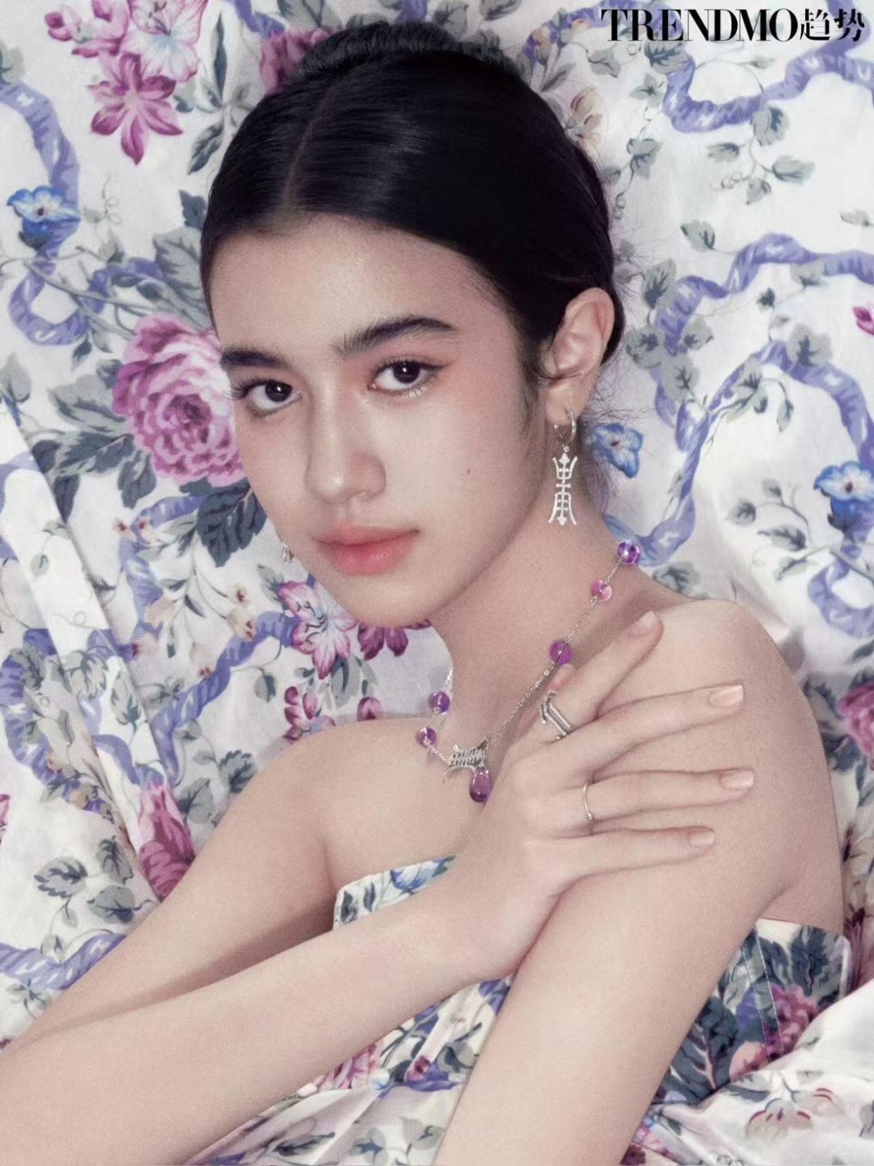 柬埔寨公主诺罗敦珍娜(西哈努克亲王曾孙女)为《Trendmo趋势》杂志拍摄的写真,则涵盖油纸伞、拱桥、竹艺、大鼓等中式元素,服饰与珠宝细节处处彰显东方美学。她佩戴的寿字纹《朝熹》珍珠耳饰,寿字纹《清露》系列耳饰,寿字纹祖母绿耳饰以及经典耳饰,展现寿字纹的多样创新设计——珍珠的温润、祖母绿的深邃与寿字纹的对称美学相得益彰,既保留传统符号的庄重,又通过创新设计赋予现代气息。作为中柬友好的象征,诺罗敦珍娜表示中华文化富有魅力,学习中国历史文化让她更好地理解中国。