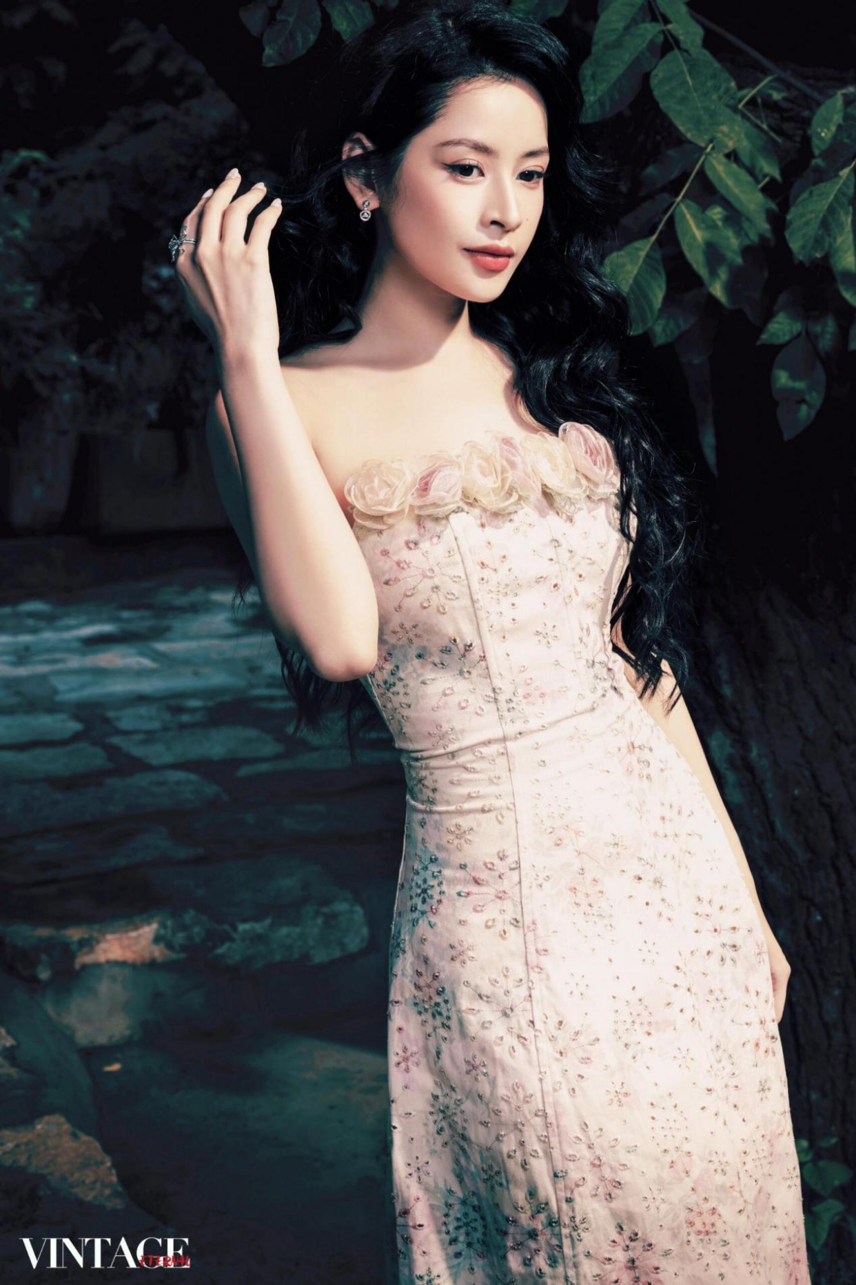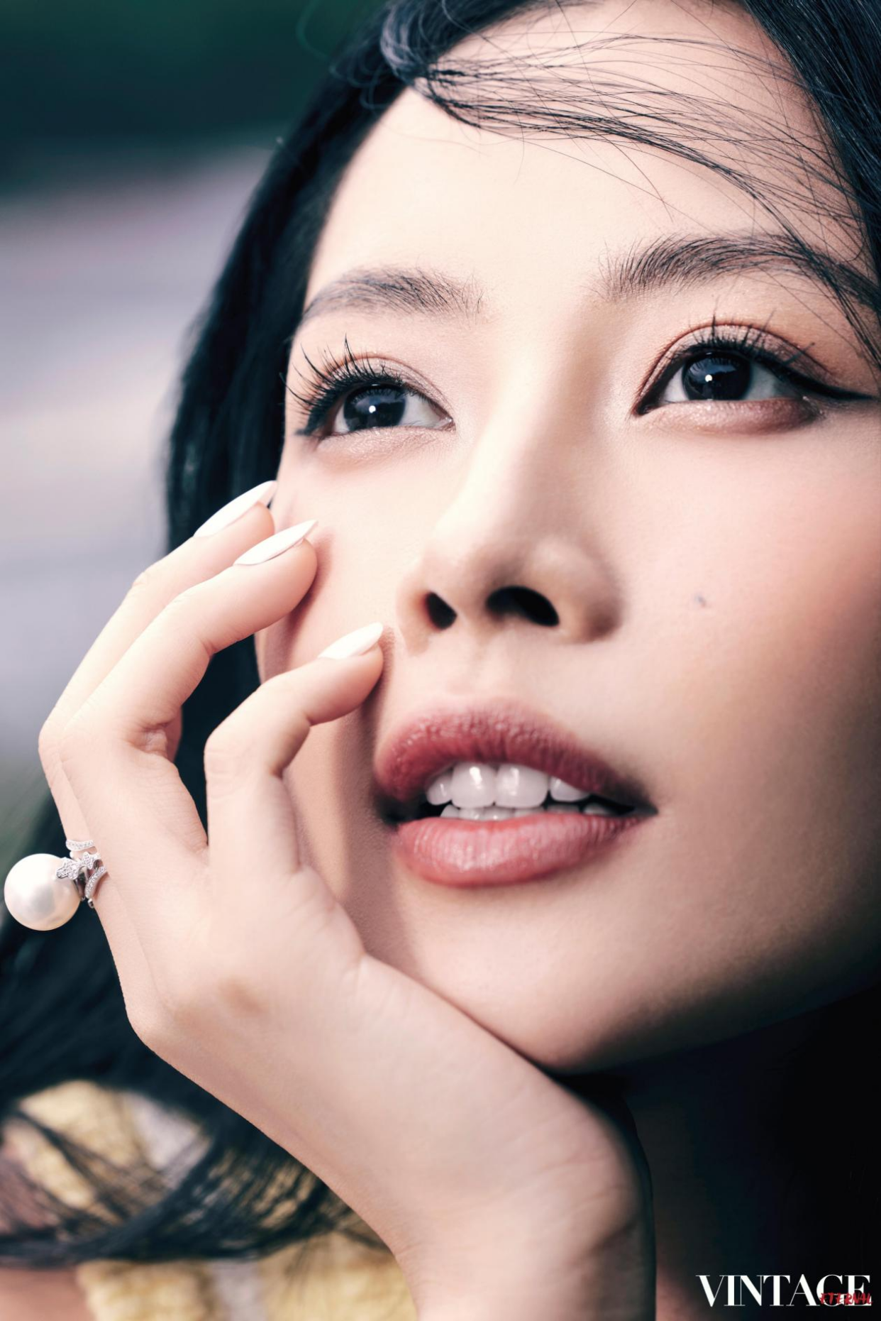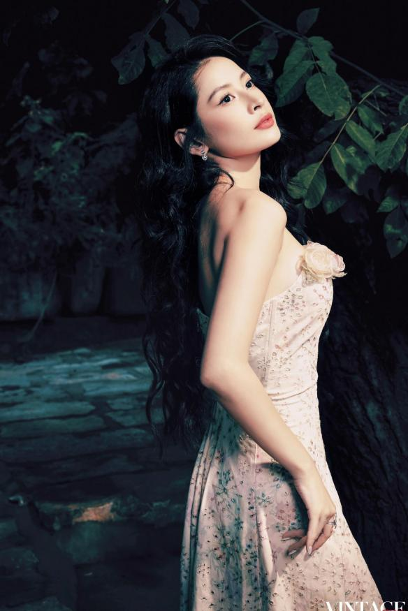 越南艺人芝芙于《Vintage复古街拍》杂志大片中,置身于中式庭院的青山绿树间,身着简约中式服饰,佩戴毓珠宝《寿字纹》珍珠戒指与《合》系列耳饰。其中,戒指设计突破传统形制,将戒臂化作对称连缀的双寿字纹,既保留汉字书法的灵动感,又以金属质感赋予现代审美;整体造型在苍翠自然的背景下,呈现出“天人合一”的东方哲学意境。芝芙在接受《人民日报》专访时表示:“中国对传统文化的传承,让我看到古老文明在当代的生命力,令人赞叹。”