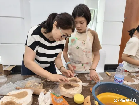 中国民族管弦乐学会陶笛艺术委员会理事许陶老师,带孩子们走进“陶笛工坊”制作陶笛,从揉泥、压模到开孔、调音,在许老师的带领下,孩子们亲手把一块陶土“变”成了会唱歌的乐器。