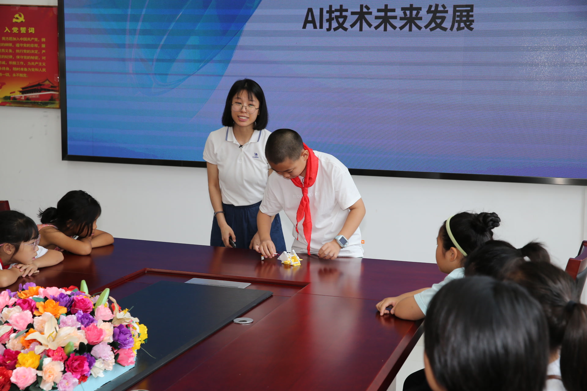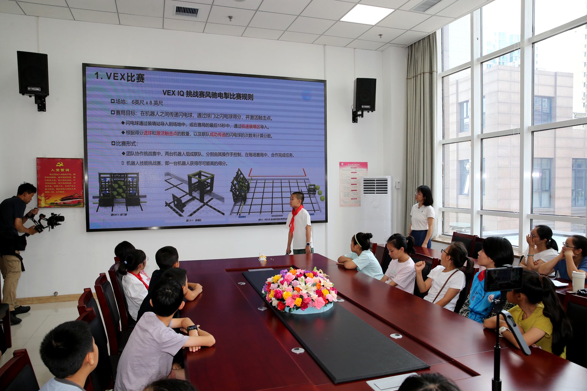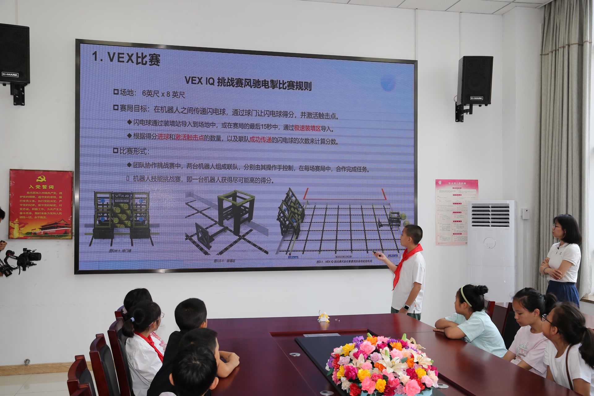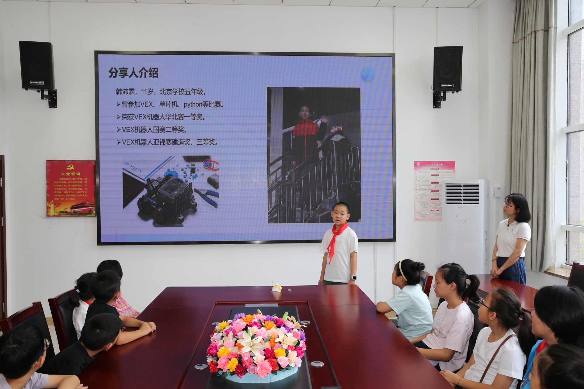 7月23日,北京学校五年级九班的韩沛霖在为大家分享机器人比赛经历。当日,由北京红爹之家妇女儿童志愿服务促进中心设置的项目“小小AI工程师”在丰台区拉开帷幕。本项目通过人工智能的知识的普及,生动有趣的真实案例,让同学们对AI有初步的认识和理解,点燃大家对AI探索的热情。王振摄
