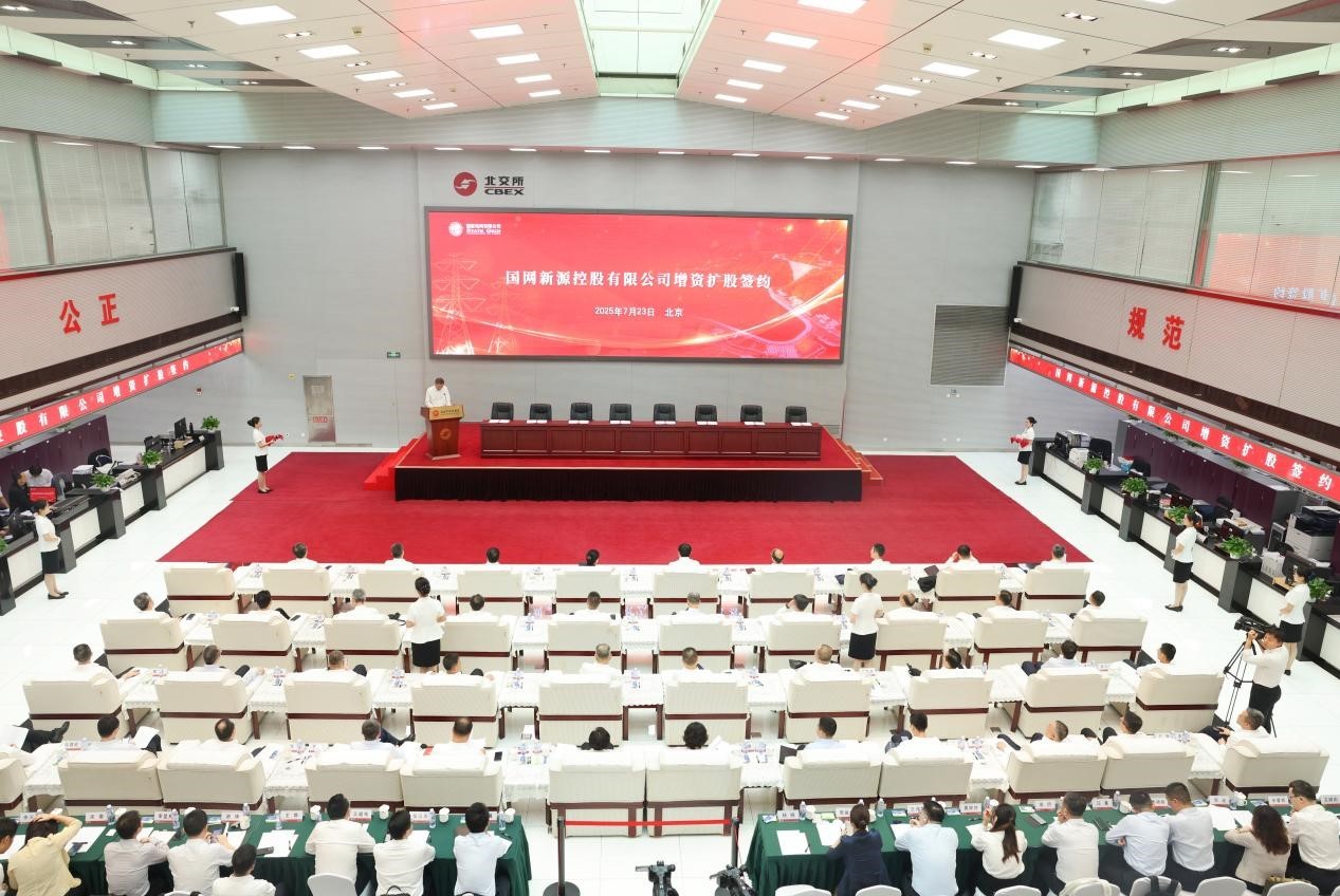 人民网北京7月24日电 (记者李博)昨日,国网新源控股有限公司增资扩股签约仪式在北京产权交易所举办,本次增资引入4家战略投资方,募集资金365亿元,创造了国资产权交易现金募资规模之最。据悉,近三年,北京产权交易所服务清洁能源产业融资超千亿元,为助力绿色低碳发展提供了强大支撑。