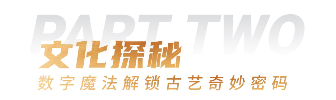 《中纹宇宙Ⅰ·文明时空》引领观众踏入一场关于文明“变与不变”的哲思之旅,探索科技与艺术之间的永恒纽带。而《中纹宇宙Ⅱ·古蜀星纹》则在此基础上,进一步深挖古蜀文明的瑰宝。夜空之下,古蜀人仰望辰星并描绘图腾符号,千年之后,借助沉浸式空间与高精度雷达感应技术,我们重构了古老文明的时空维度,让观众仿佛穿越时空,与古蜀文明亲密接触。
