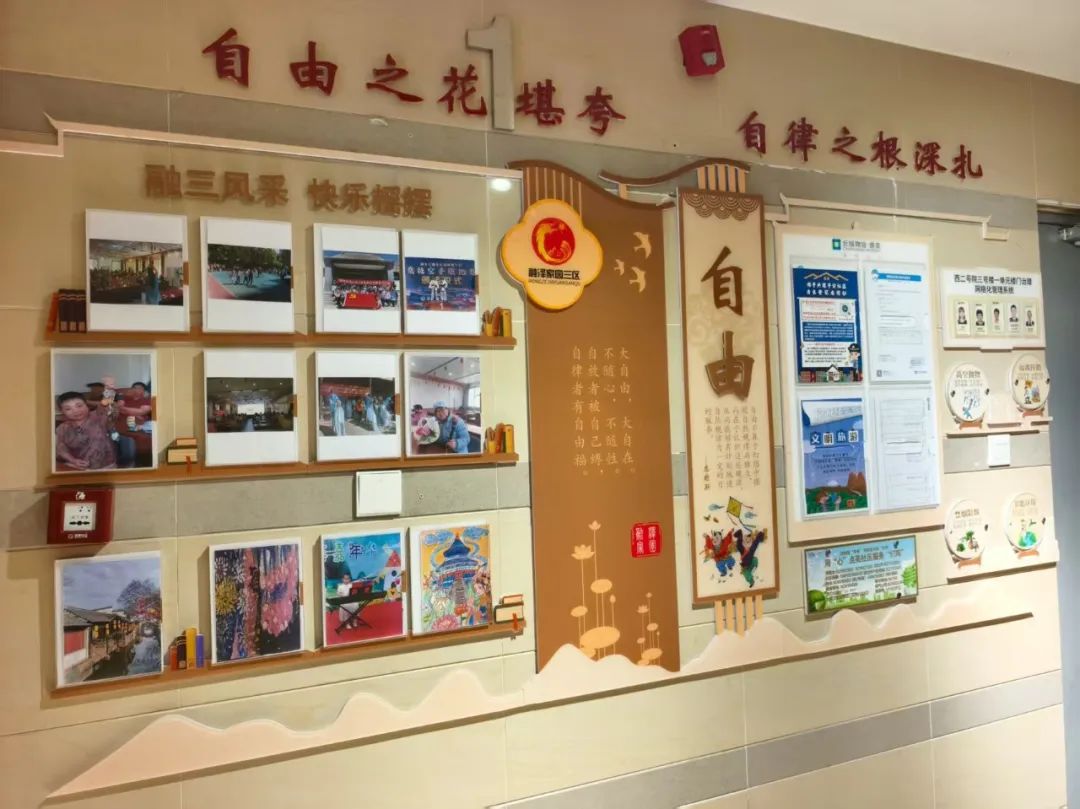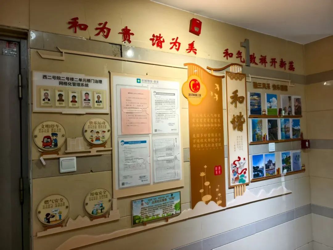 走进融泽家园三区社区的楼门,浓浓的“家”文化扑面而来。在楼门文化的“风采区”版块,墙上悬挂着居民亲手绘制的书画作品、手工艺品以及居民参加各类社区活动的风采剪影等,每一层楼道都宛如一个小型的文化展厅,将楼门装点得格外温馨。这些艺术作品不仅提升了楼道的美观度,更在无形中拉近了邻里之间的情感距离,使居民在欣赏艺术之美的同时,深切感受到家的归属感。