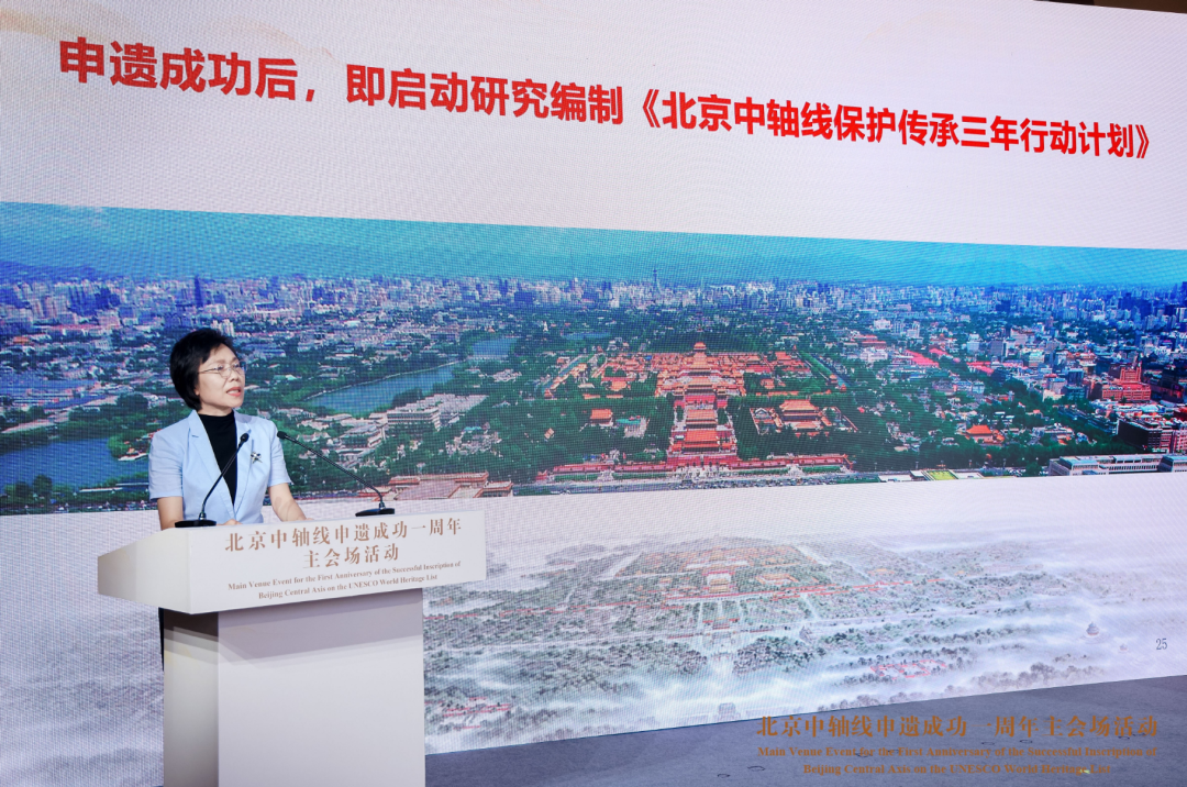 自2024年7月27日北京中轴线申遗成功一年来,北京市深入贯彻习近平总书记对加强文化和自然遗产保护传承利用工作作出重要指示,在加强文化和自然遗产的整体性、系统性保护,加强文化遗产传承利用工作,加强文化遗产领域国际交流合作方面取得了一系列成果。活动现场发布了四项标志性成果。