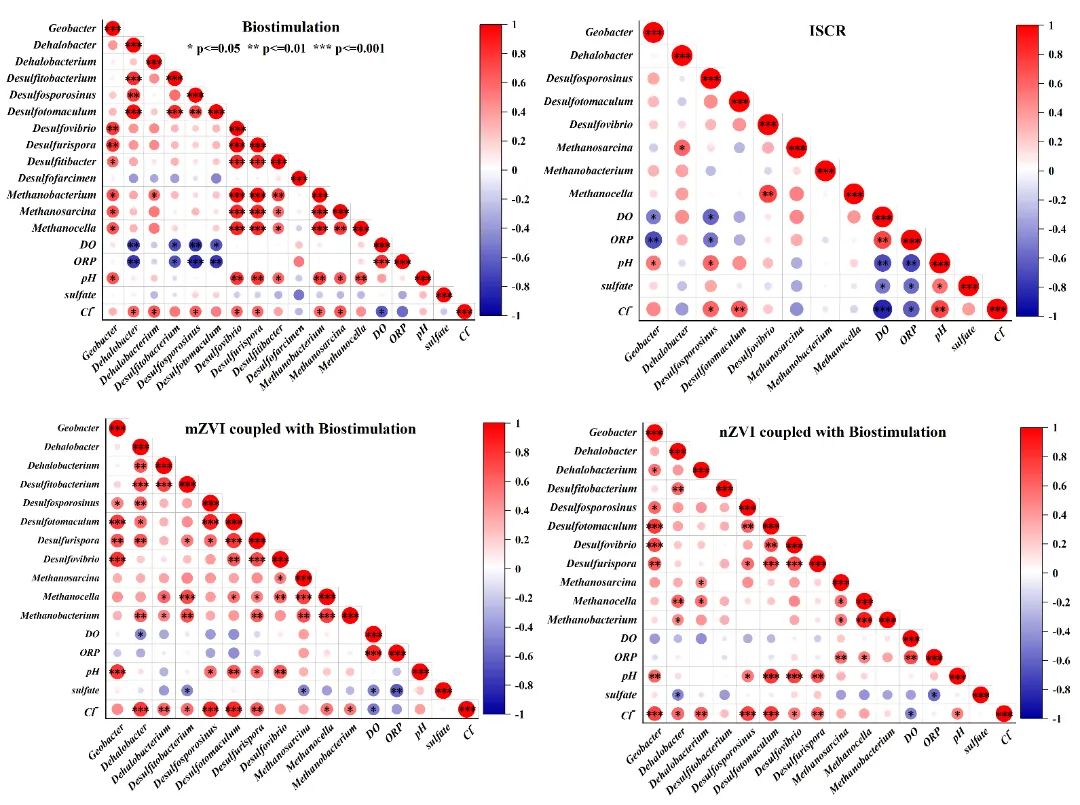 零价铁(ZVI)-生物刺激耦合是有效控制地下水CAHs污染的常用策略之一。该技术得益于化学和生物过程的协同增效,不仅可显著加快生物脱氯的启动,且有效利用了ZVI固有的还原能力。然而在实际场地应用过程中,含水层环境条件的异质性往往会导致修复策略的脱氯效率和产物分布存在差异。