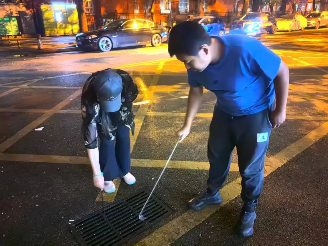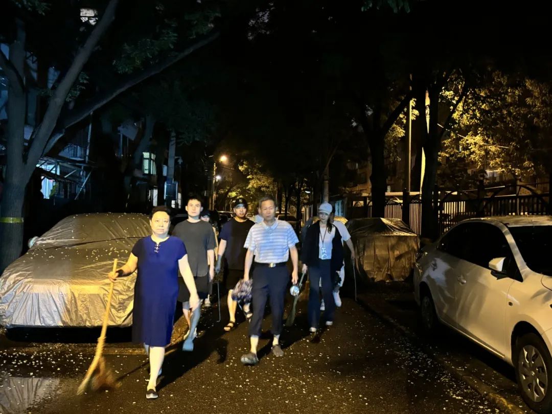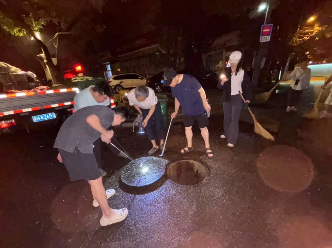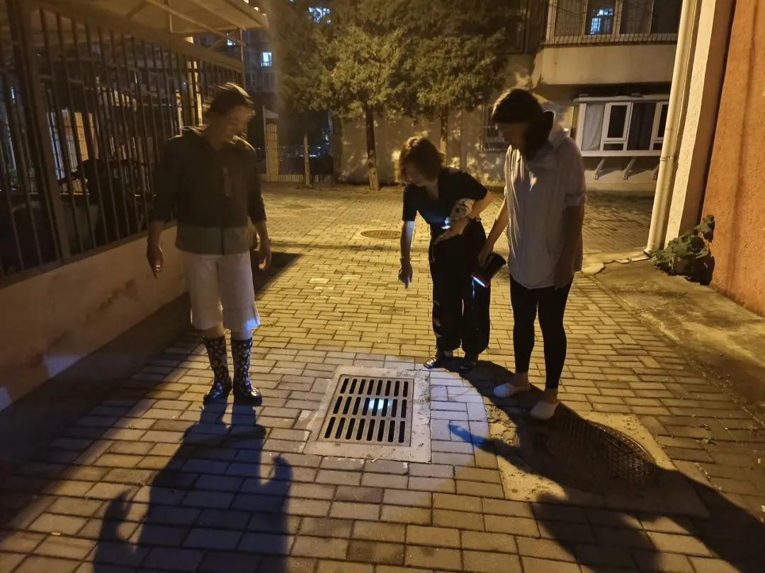 深夜,一阵大雨倾盆过后,街道及各社区值守人员手持工具,迅速奔赴各个积水点位,清理排水口、雨箅子的杂物,树叶、树枝、塑料袋等,让原本积水的路面逐渐恢复畅通。在下雨的深夜,他们用坚守和付出,为社区居民筑起了一道安全防线。