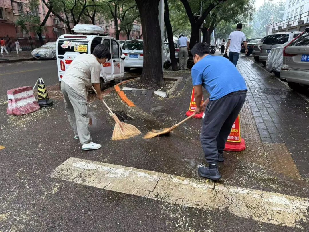 朝阳区发布暴雨蓝色预警,和平街立即展开部署,组织机关干部、社区工作者应急队伍以及志愿者们值班值守,确保在岗在位,全面排查隐患,强化应急准备,时刻关注天气情况,对雨情快速响应、及时处置。以“雨”为令,全力守护辖区居民生命财产安全。
