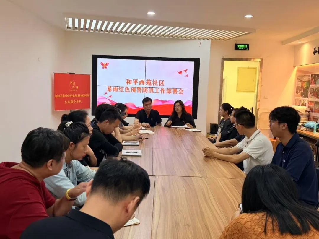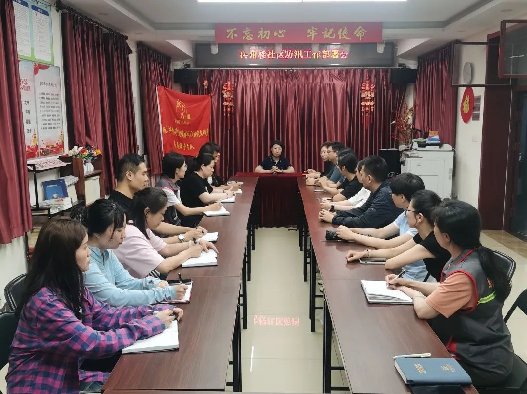 街道处级领导分别包片社区召开防汛工作部署会,要求科室人员及社区全体社工按照防汛要求落实工作。针对重点点位,地库、半地下室和门店进行巡查和提醒;加强与物业联系,要求物业落实防汛责任;如遇突发情况启动应急预案并第一时间上报;会后,社区按要求开展辖区巡视巡查工作。