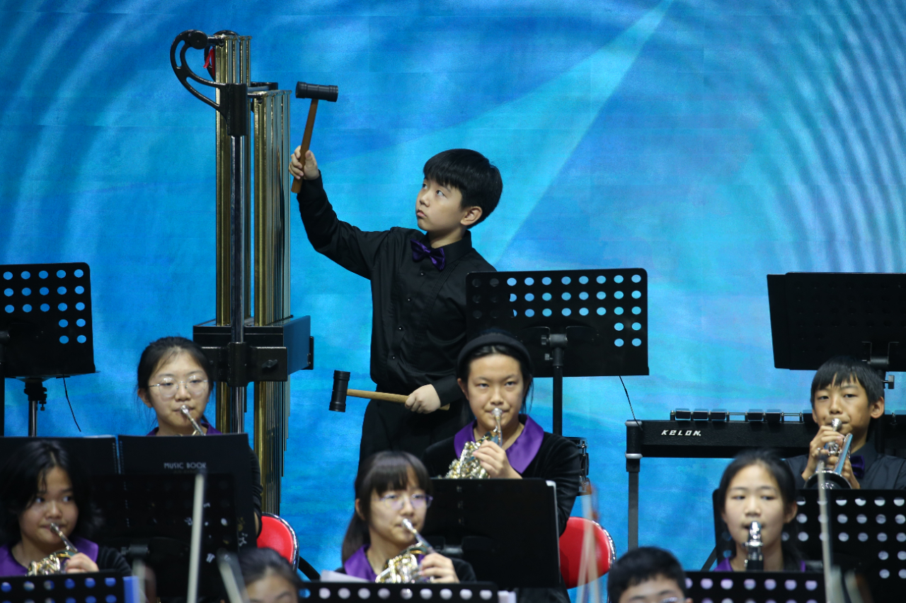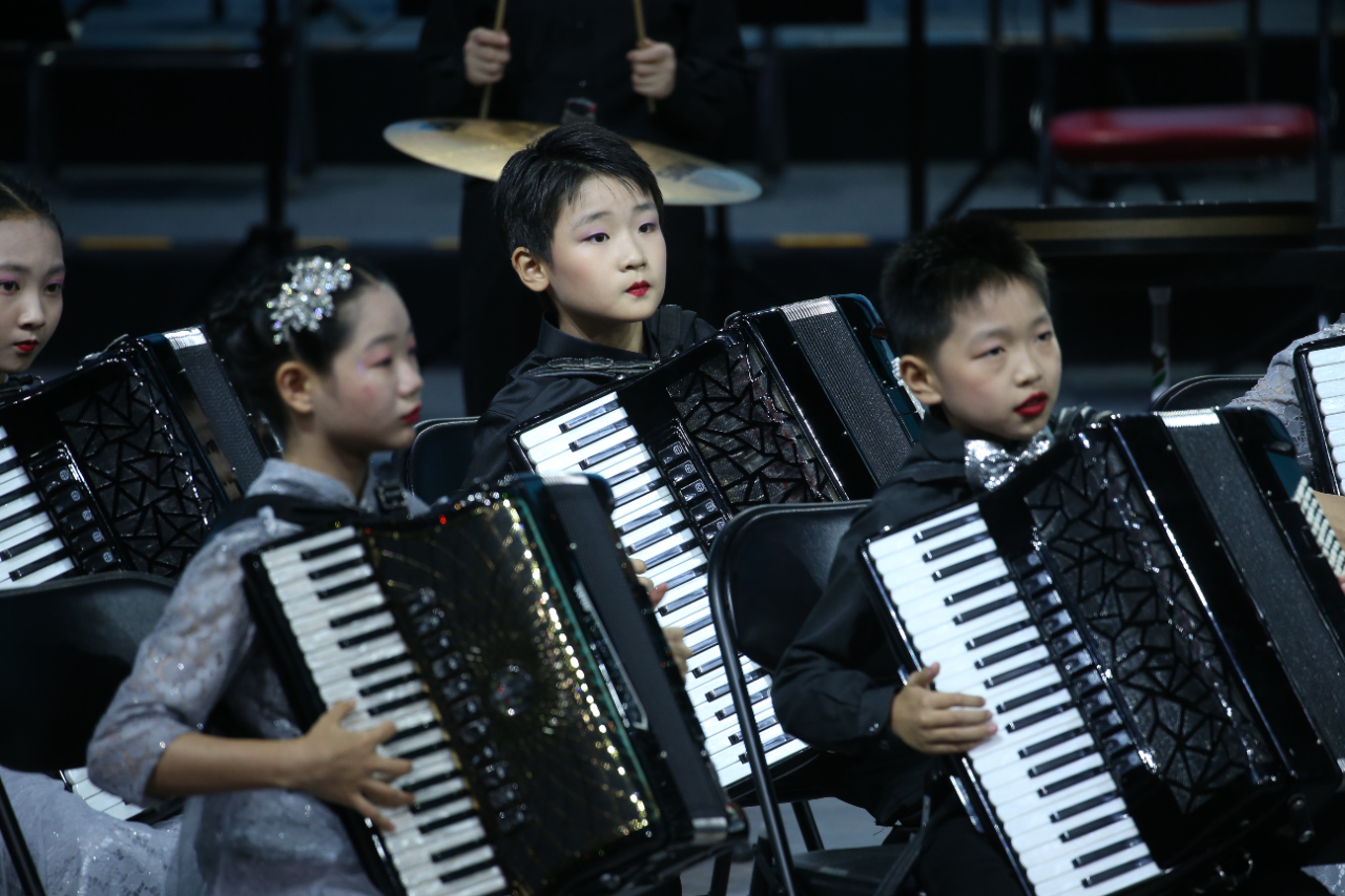 在器乐展演中,现场氛围热烈,民乐《天山盛会》《天边情歌》《写给少年诗人的信》《悄然》《天方夜谭遇见原神》《赛马》等16个曲目,西乐《红色娘子军组曲》《红星歌》《飞驰在新视界》《大鱼海棠》《望》《rainbow》《小火车》等23个曲目的展示,每一个音符都饱含着温暖与力量,展现不同风情的音乐作品,孩子们的指间拨动奏响了蓬勃向上的旋律。