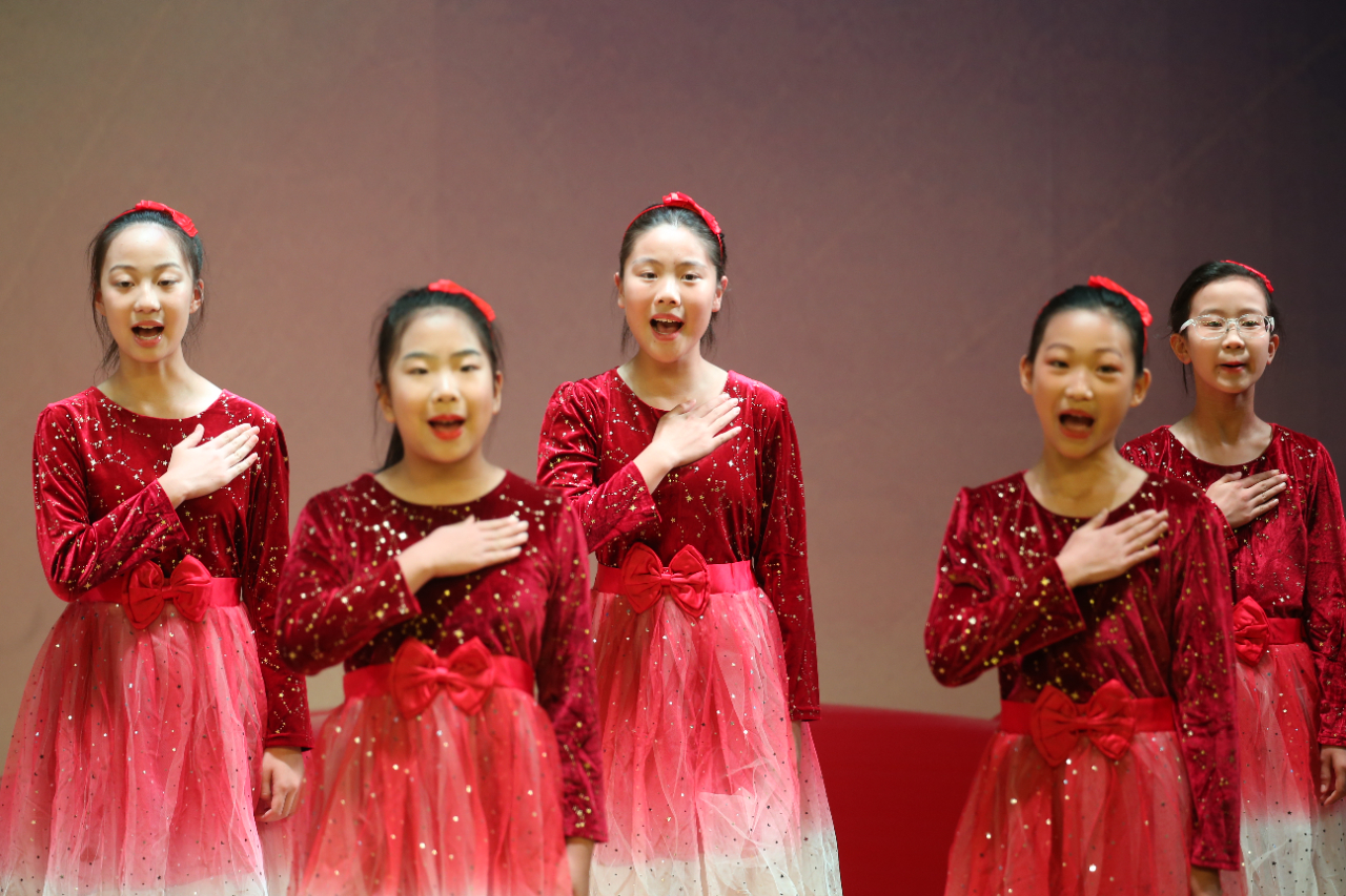 在朗诵展演中,孩子们用清澈有力的嗓音演绎浓浓爱国情怀的5个作品,《我和我的祖国》《假如星星会唱歌》《汉乐府——<江南>》《灯火里的中国》《中国红》传递出中华传统文化的深厚底蕴,展现出新时代青少年的使命担当。