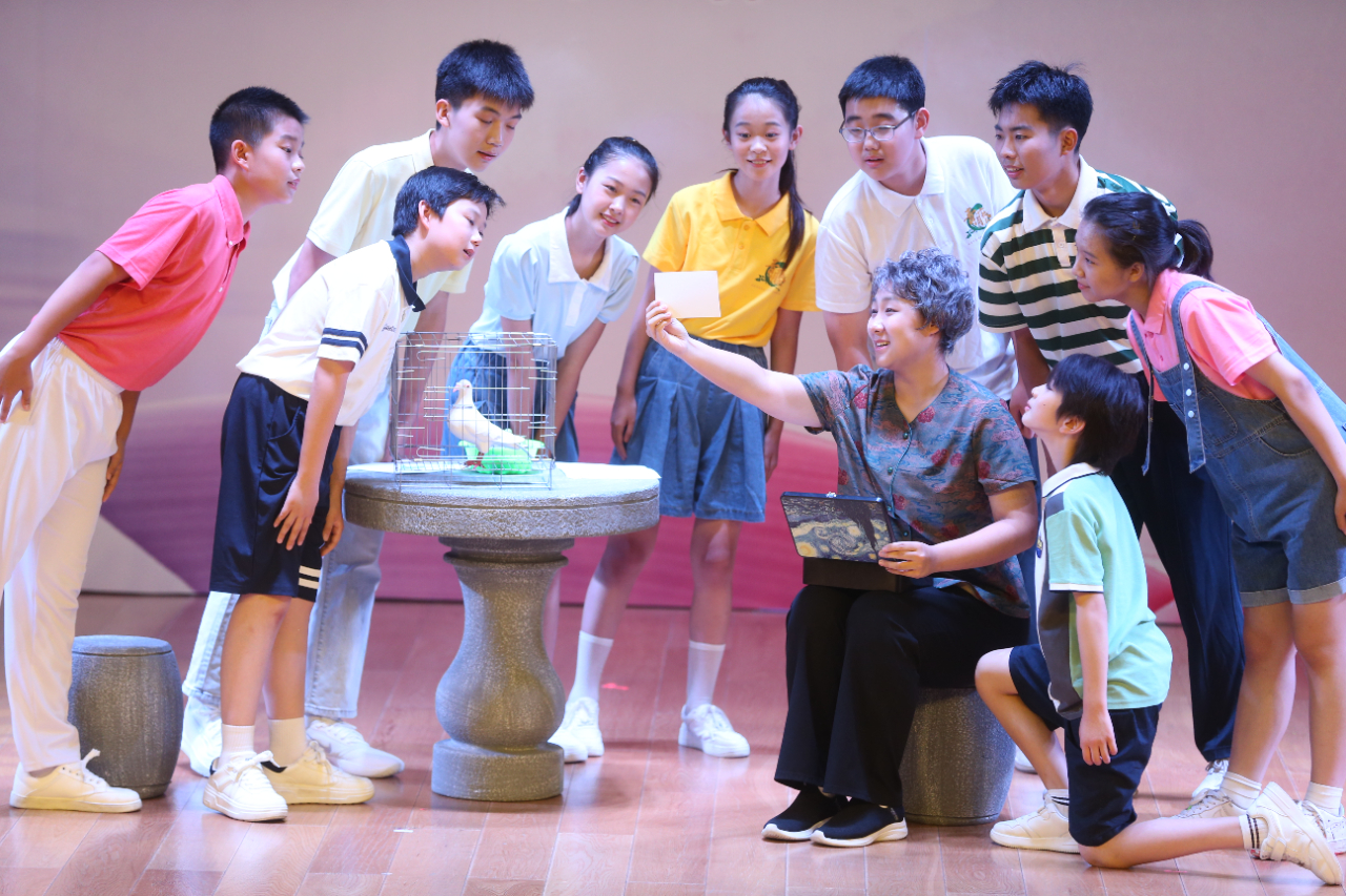 在戏剧、戏曲展演中,12个节目精彩纷呈。戏剧《成长》《屋顶上的鸽子》《军功章》《新二十四孝》《异乎寻“球”》等节目,融合了古今中华故事,孩子们以张力十足的表演,涌动着对先辈的敬仰,憧憬着对未来的美好愿望。戏曲《东郭先生》《霸王别姬》《沙家浜·智斗》《卖水》等节目,小艺术家们满怀热忱,传递童年的纯真,用表演生动诠释对艺术的不懈追求。