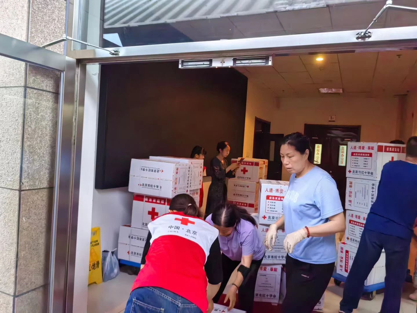 7月26日,密云区遭遇强降雨突袭,气象部门发布最高级别暴雨红色预警,防汛救灾工作瞬间进入紧急状态。为第一时间保障受灾群众的基本生活与救援需求,密云区红十字会迅速启动应急响应机制,紧急调拨赈济救护物资。面对短时间内大量物资的装运压力,红十字志愿服务队闻令而动,火速招募志愿者开展装运工作,以实际行动为防汛救灾筑牢“后勤防线”。