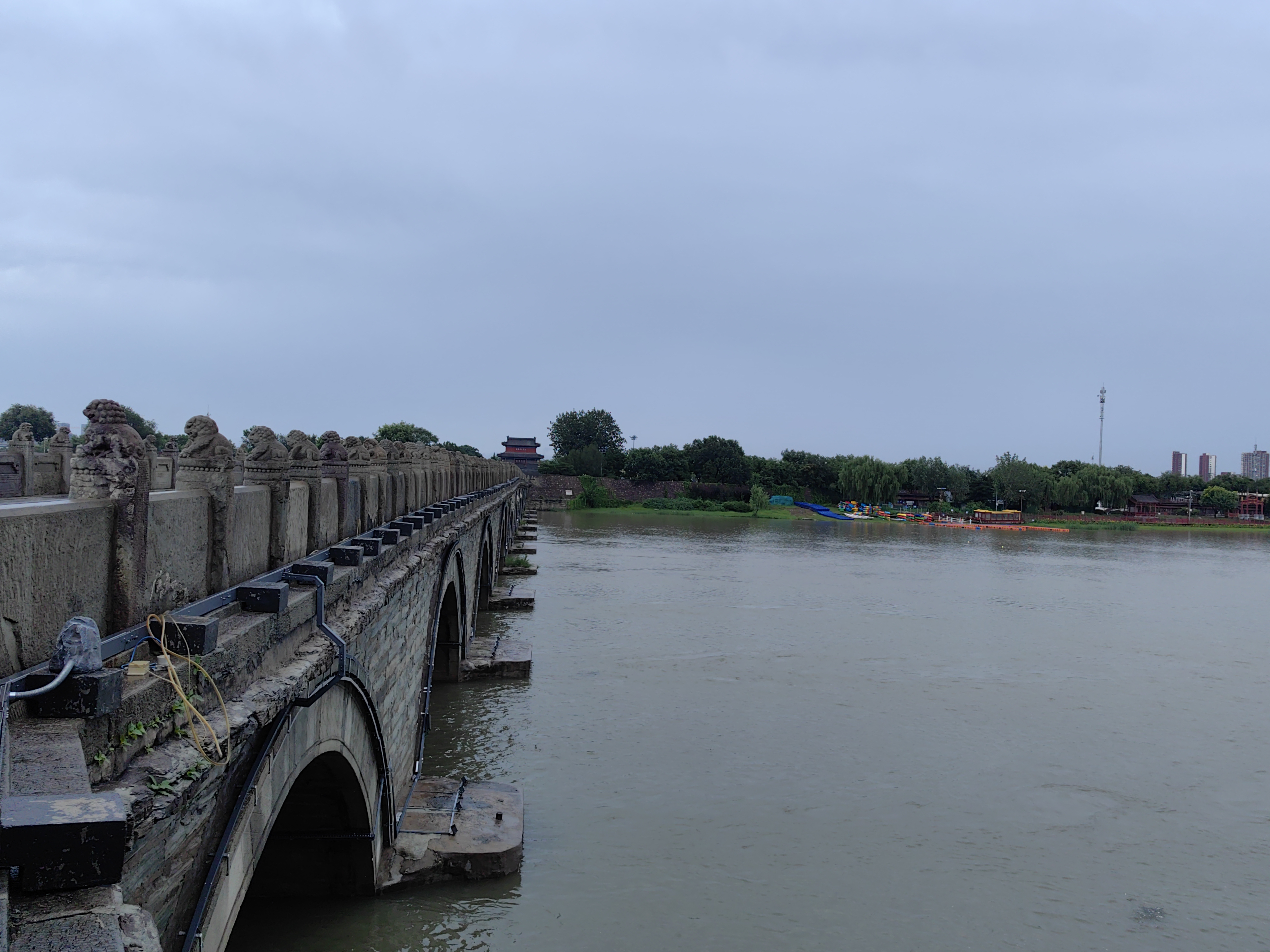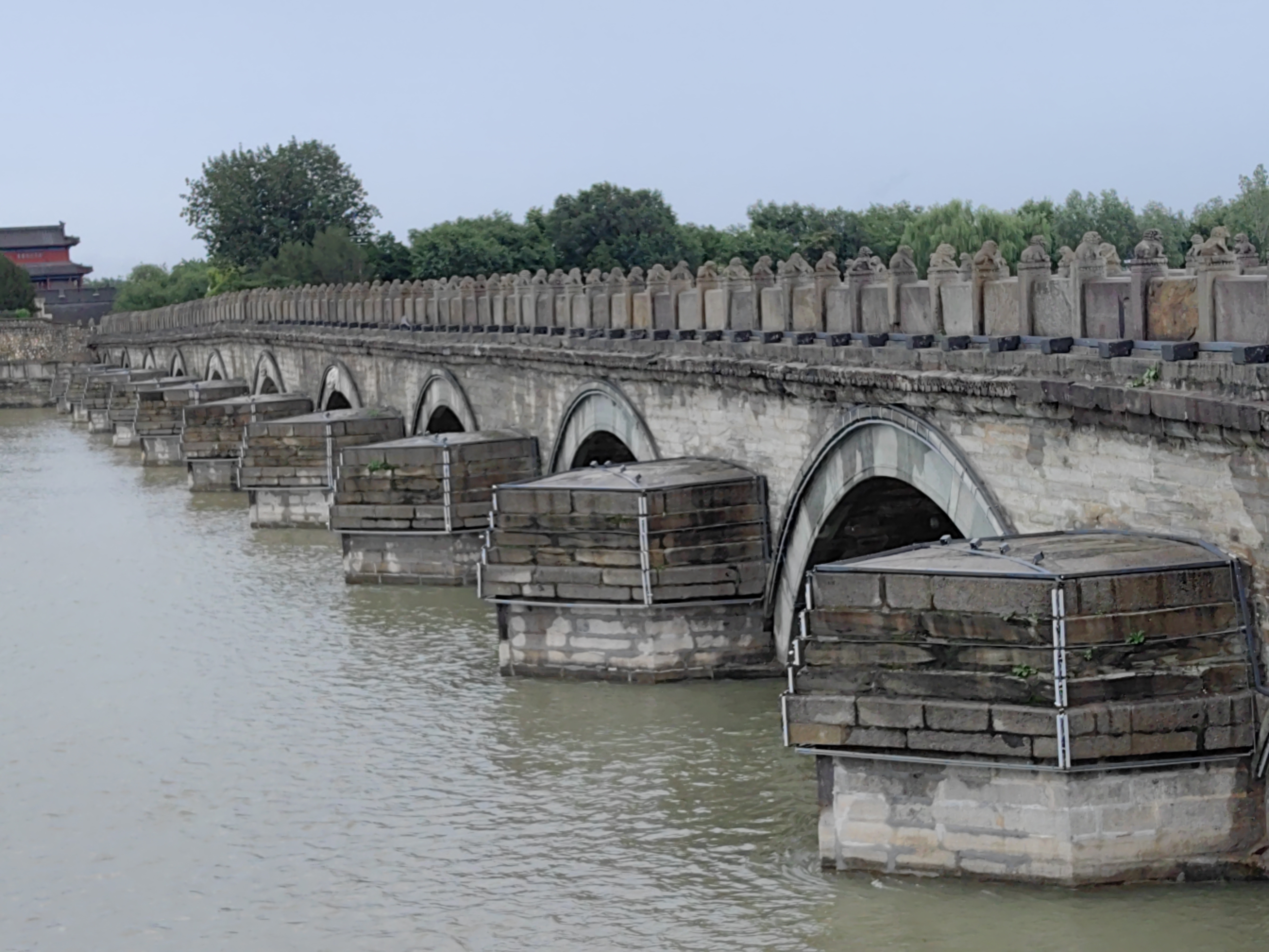 立于桥栏旁俯瞰,永定河挟裹着上游的泥沙奔涌向前,浑黄的河水在桥墩处激起漩涡。极目远眺,河面在雨后泛着独特的铜色光泽,蜿蜒流向远方。脚下是承载了八百年风雨的石桥,眼前是奔流不息、滋养古都的母亲河,历史的厚重感与自然生命的律动在此刻交织。风声、水声、间或的鸟鸣与蝉声,汇成一首独特的“桥畔交响”,让人不禁驻足沉思,感受着时光在这座古桥与这条长河上的流淌印记。