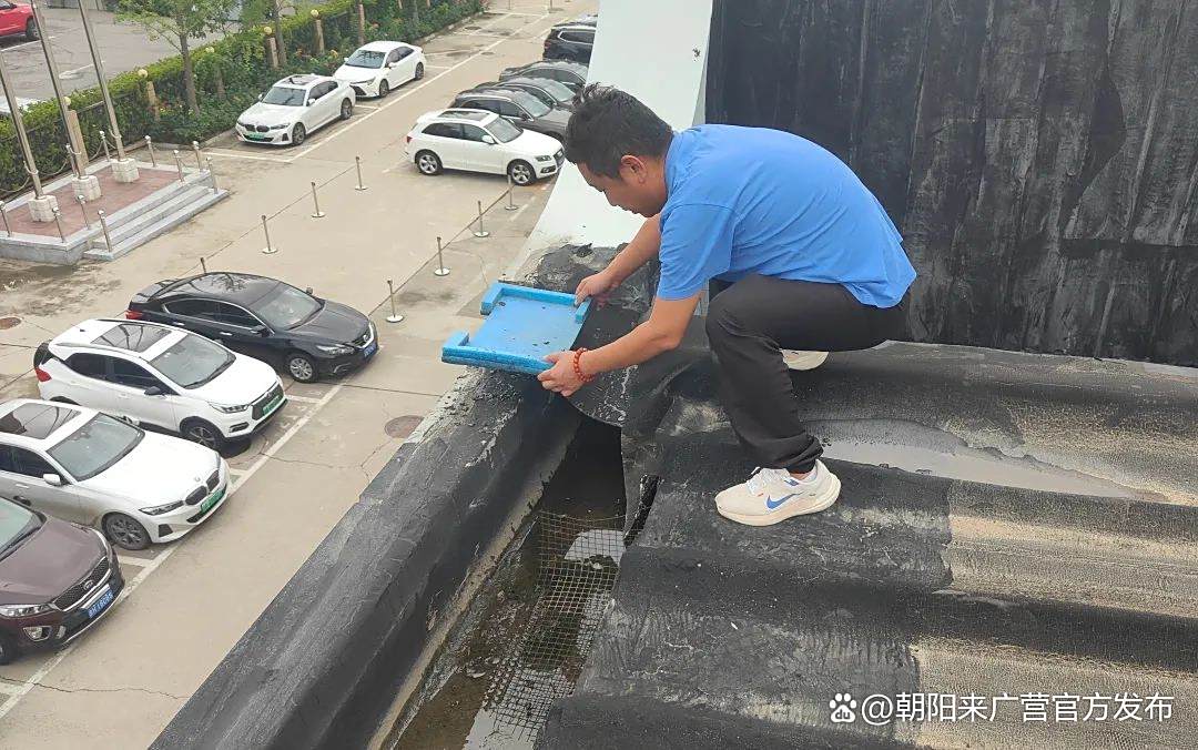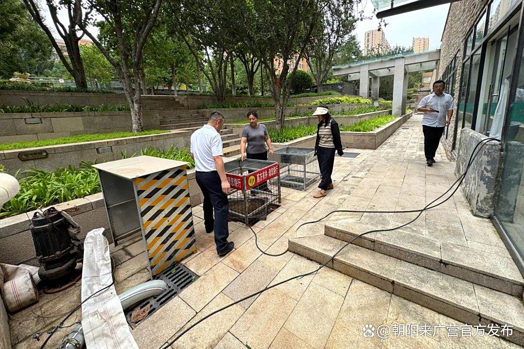 社区、直属企业对易积水路段雨水箅子、水井、楼顶排水管道等点位进行全面清掏疏通,确保排水畅通。