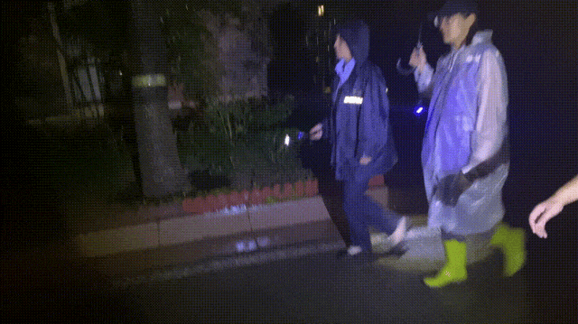 随着强降雨如期而至,地区防汛力量全员在岗,加强夜间巡查值守力度。