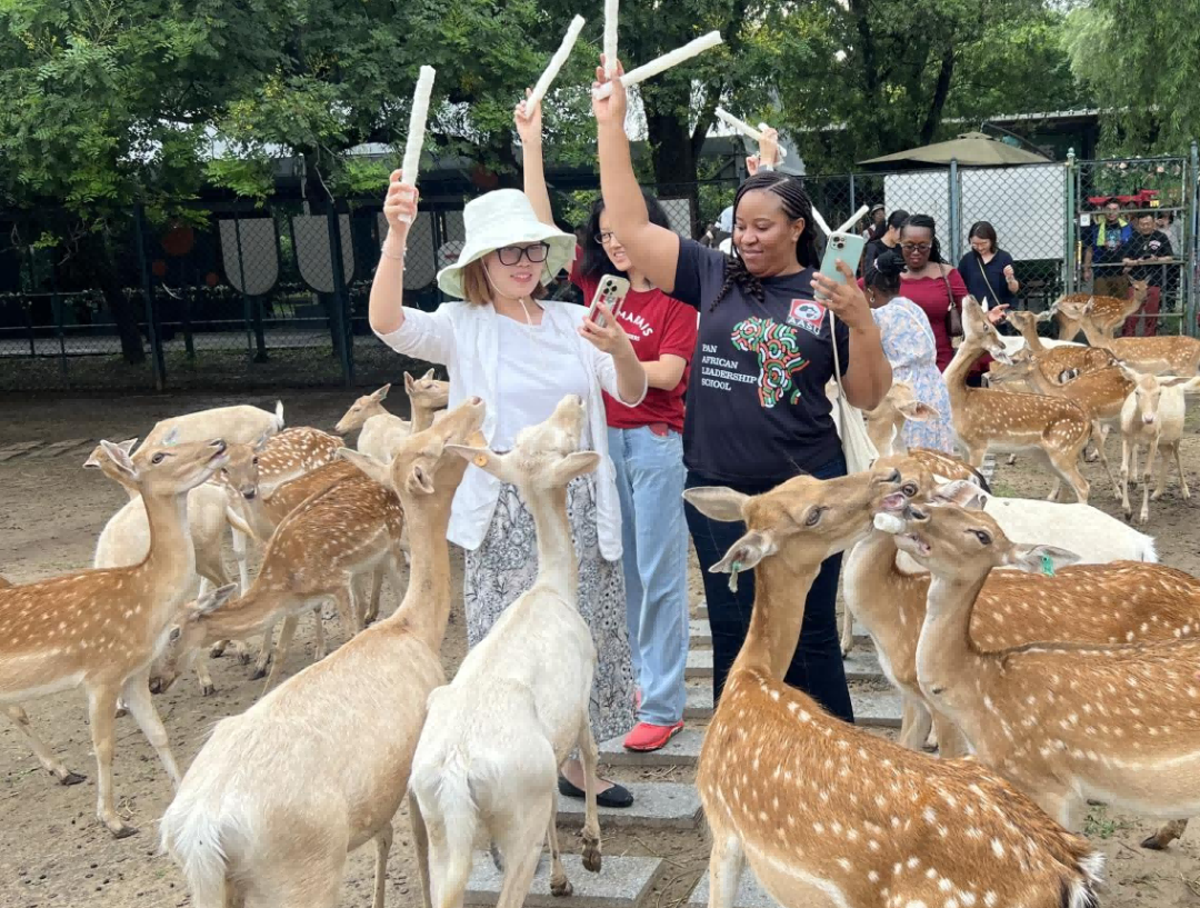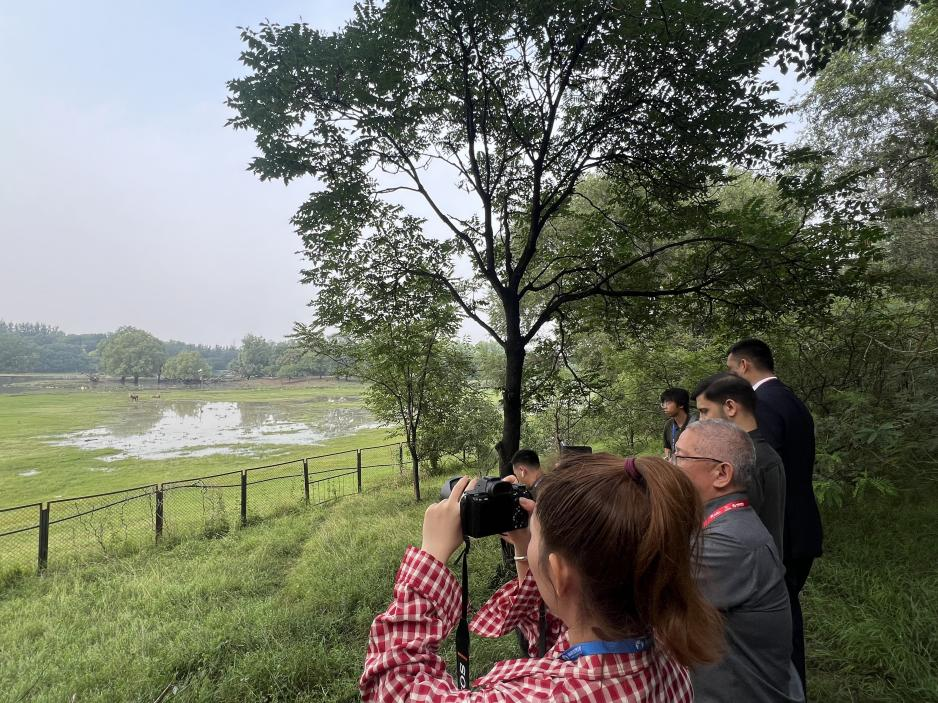 7月25日、27日,北京麋鹿生态实验中心(以下简称“麋鹿中心”)举办的“永定河畔麋鹿生”麋鹿回归40年夏秋游活动迎来了特殊的国际访客。来自亚洲和非洲国家的两个代表团共58名外宾走进麋鹿苑,深入了解中国麋鹿保护成果,亲身体验生态文化,共同见证这一珍稀物种回归40年来取得的辉煌成就。