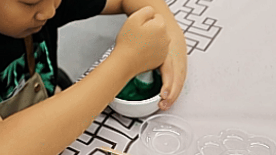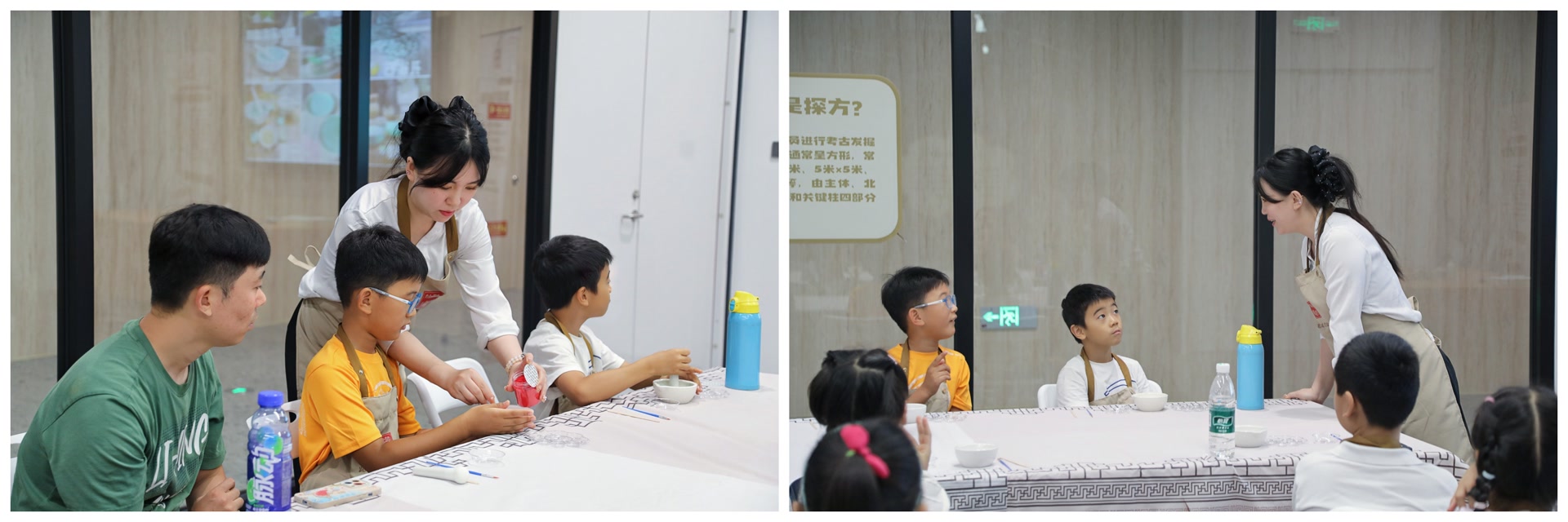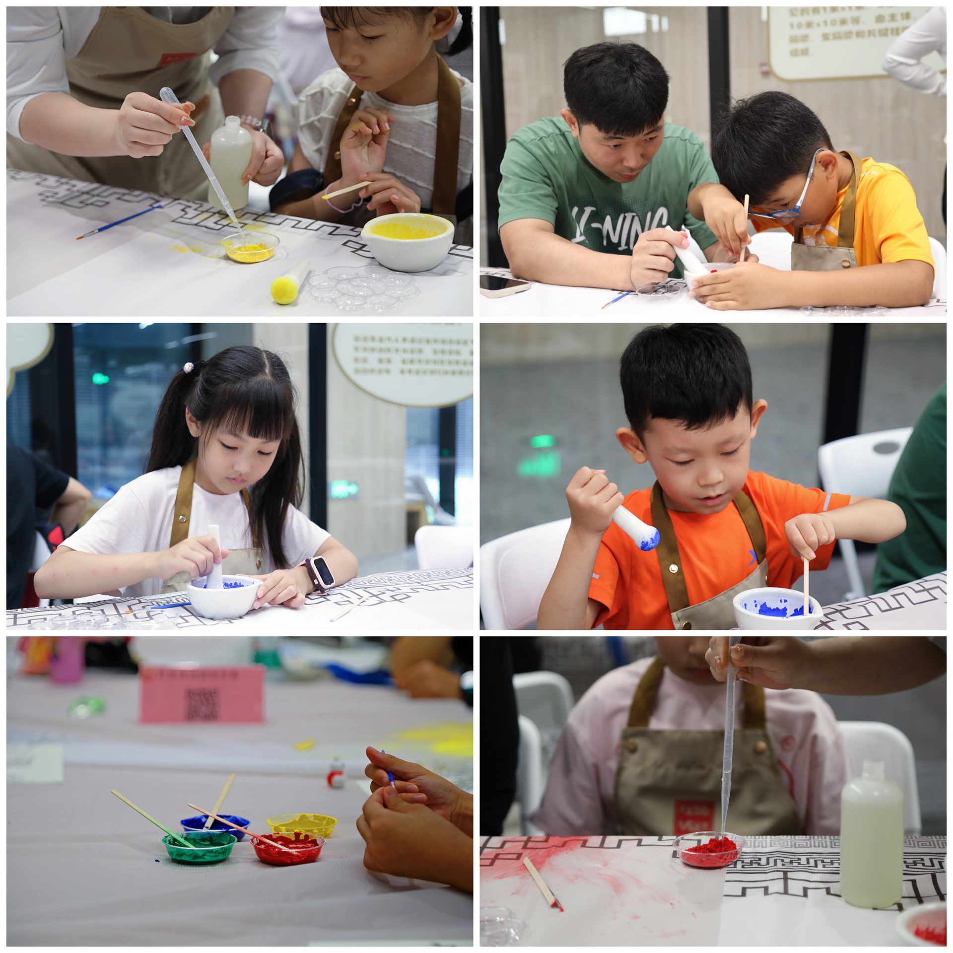 孩子们亲手筛选矿石,耐心研磨,感受坚硬矿石在指尖化为细粉的奇妙。当接触到提纯颜料的“水飞”古法时,孩子们专注的眼神中闪烁着发现的惊喜,在实践中悄然领悟匠人们化粗砺为细腻的巧思与智慧,让千年前的色彩传奇在指尖自然延续。