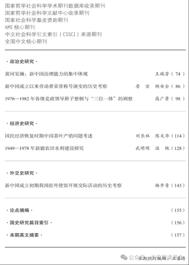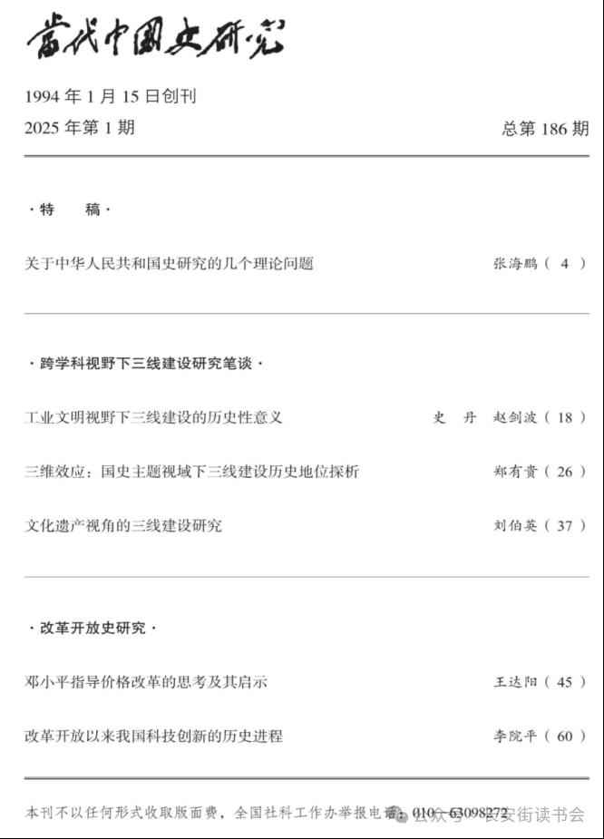 张海鹏在《当代中国史研究》2025年第1期撰文《关于中华人民共和国史研究的几个理论问题》指出,中华人民共和国成立 70 多年来取得了举世瞩目的辉煌成就。系统总结成功经验,科学编修国史,有利于更好从历史中汲取营养,为中华民族伟大复兴做出新的更大贡献。做好国史研究,至少需要处理好对以下几个理论问题的认识:一是关于革命根据地的终结和新中国的成立,二是关于计划经济和“闭关锁国”,三是关于工业化和农业集体化,四是关于改革开放前各种思想批判运动和百家争鸣,五是关于改革开放和市场经济,六是关于现代化与阶级斗争。总起来讲,国史研究中的理论问题,是如何运用唯物史观的问题,是如何正确运用马克思主义中国化理论,即如何以毛泽东思想、邓小平理论、“三个代表”重要思想、科学发展观、习近平新时代中国特色社会主义思想来指导研究的问题,这是国史研究的指导思想,是国史研究理论中的根和魂。努力体现这些指导思想,国史“三大体系”就会陆续建立起来,国史研究就一定能繁荣发展。