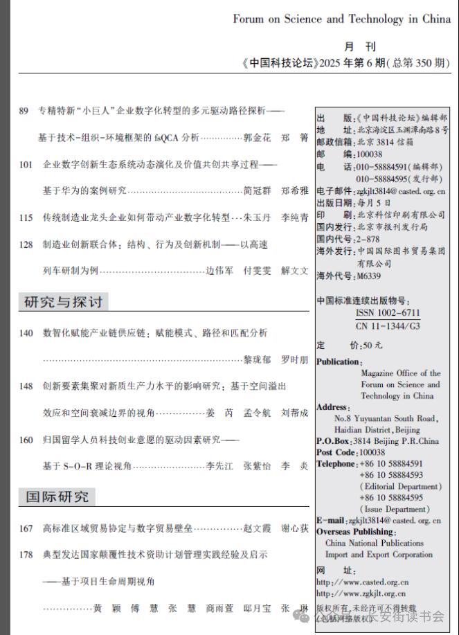 黄涛、陈雅倩、张胜、金宇寰在《中国科技论坛》2025年第6期撰文《科技领军企业支撑制造强国建设的角色功能、能力基础与实现路径》指出,科技领军企业是支撑制造强国建设和推动新型工业化进程的关键力量。文章系统梳理科技领军企业在制造强国建设中的角色与功能定位,立足底层原理和终端产品的争议,构建了涵盖底层原理研发、终端产品开发、终端产品制造和供应链优化四大要素的多维能力框架。这些能力既相互支撑又互为制约,构成科技领军企业核心竞争力的基础。基于此,文章进一步剖析科技领军企业支撑制造强国建设的四大关键瓶颈:基础研究体系薄弱制约颠覆性成果产出、产学研合作难以满足企业底层原理需求、标准品牌短板影响终端产品竞争力、协同能力不足引致分工网络碎片化。为强化科技领军企业的支撑效果,文章提出应着力强化企业基础研究体系建设、推动有组织科技成果转化、加快标准和质量体系建设、构建大中小企业融通创新格局,以构筑制造业整体创新能力和竞争力。